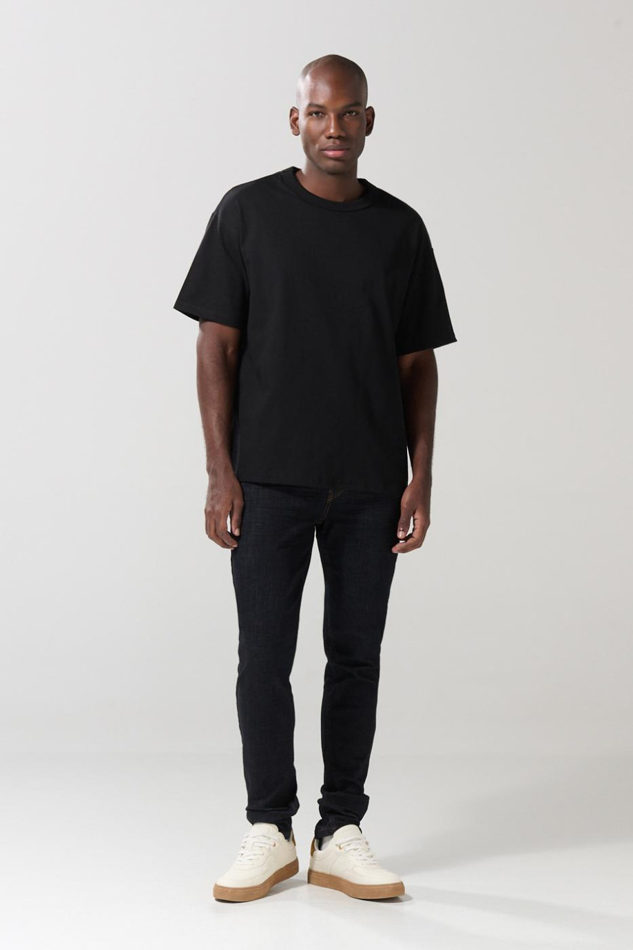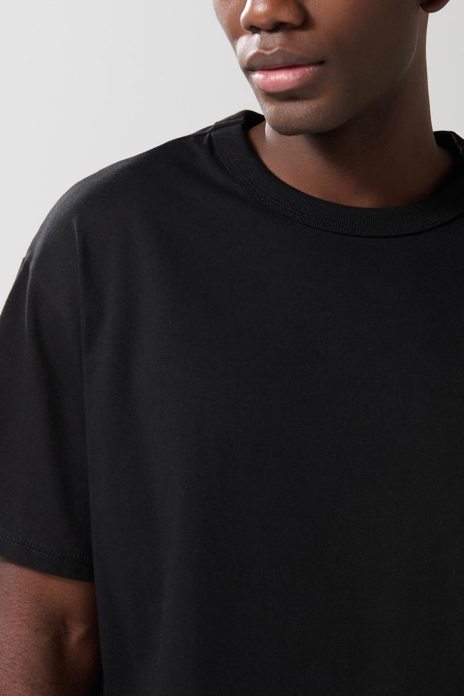 Camiseta unicolor cuello redondo oversize con hombro caído
