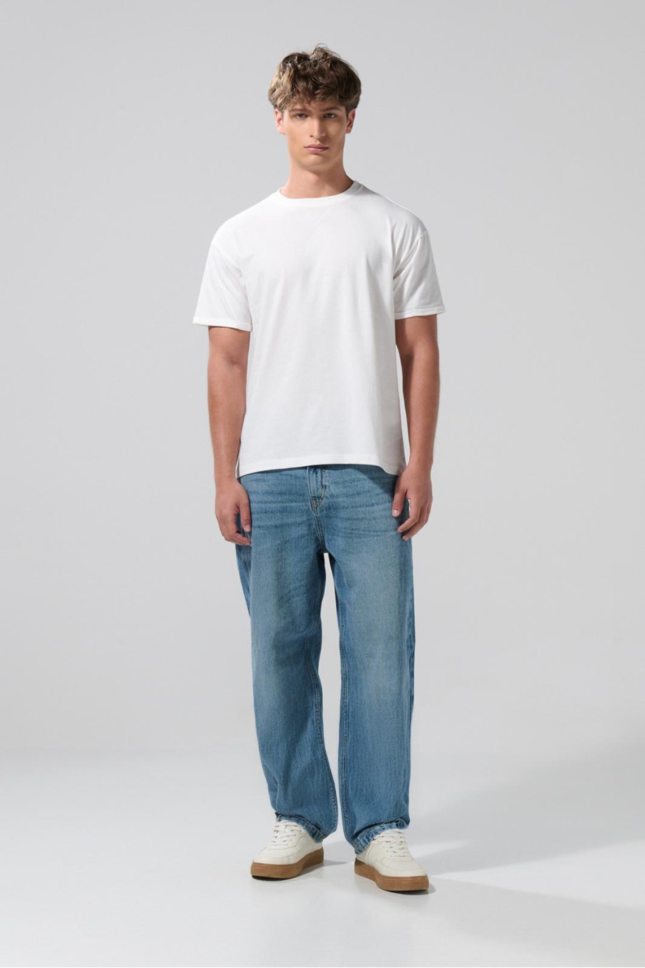 Camiseta unicolor en algodón manga corta con costura cruzada