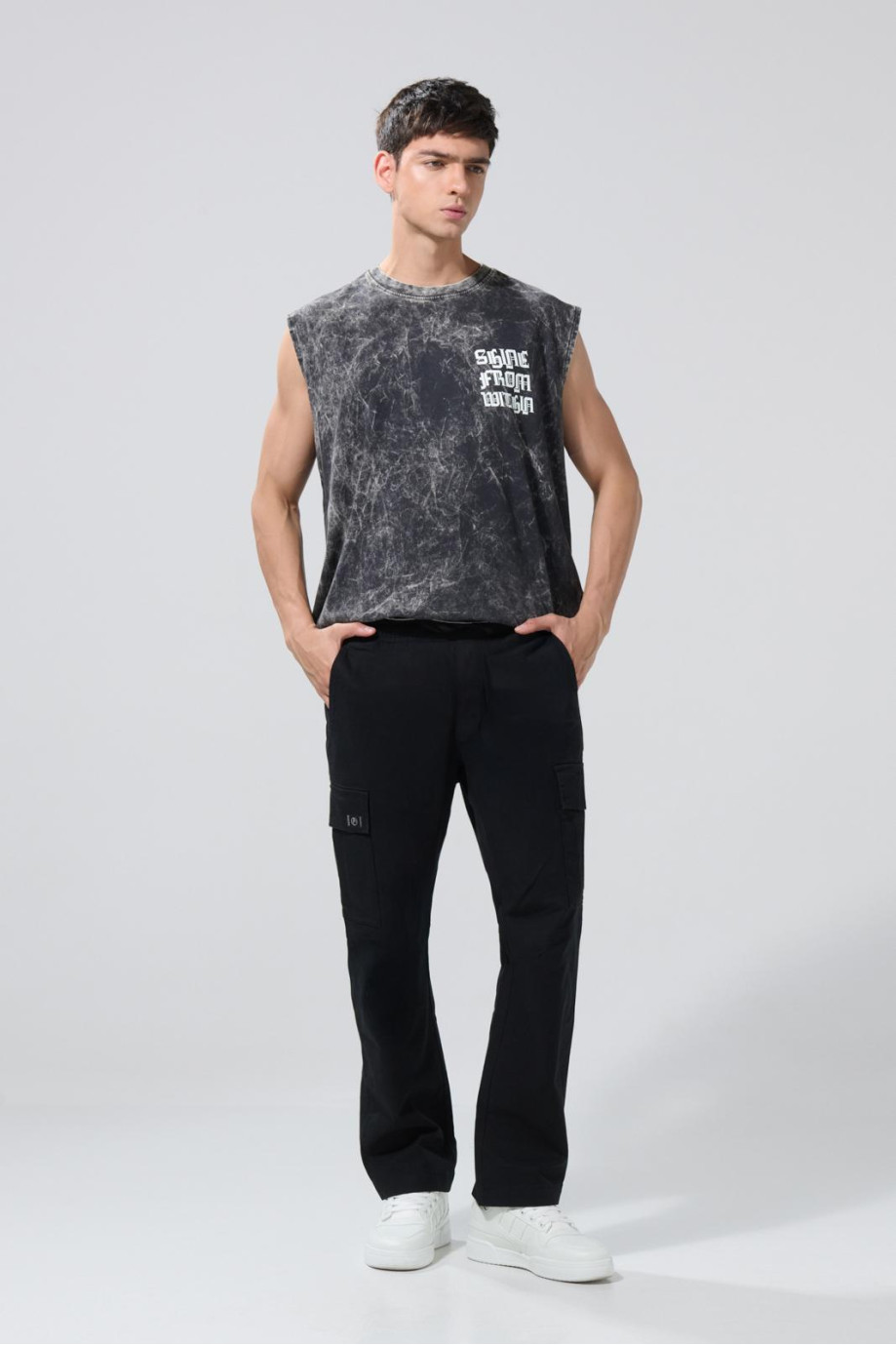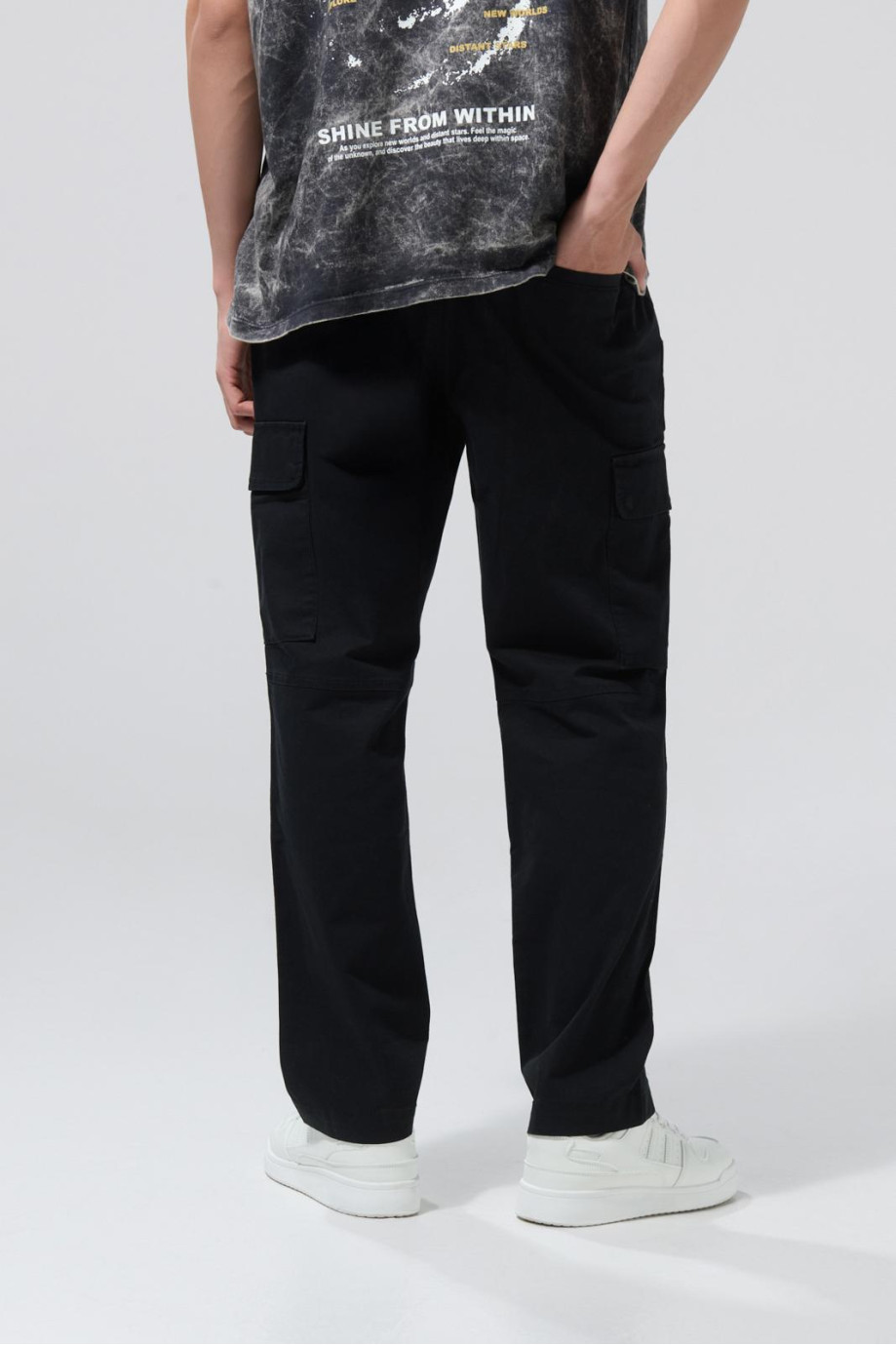 Pantalón unicolor cargo para hombre, elaborado en tela de dril, cuenta con tiro bajo, cintura ajustable, bolsillos en los costados, bota recta y un fit ligeramente ceñido al cuerpo. Dale una nueva identidad a tu propio estilo combinando esta prenda con tus camisetas básicas preferidas, así serás la sensación en todos tus planes.