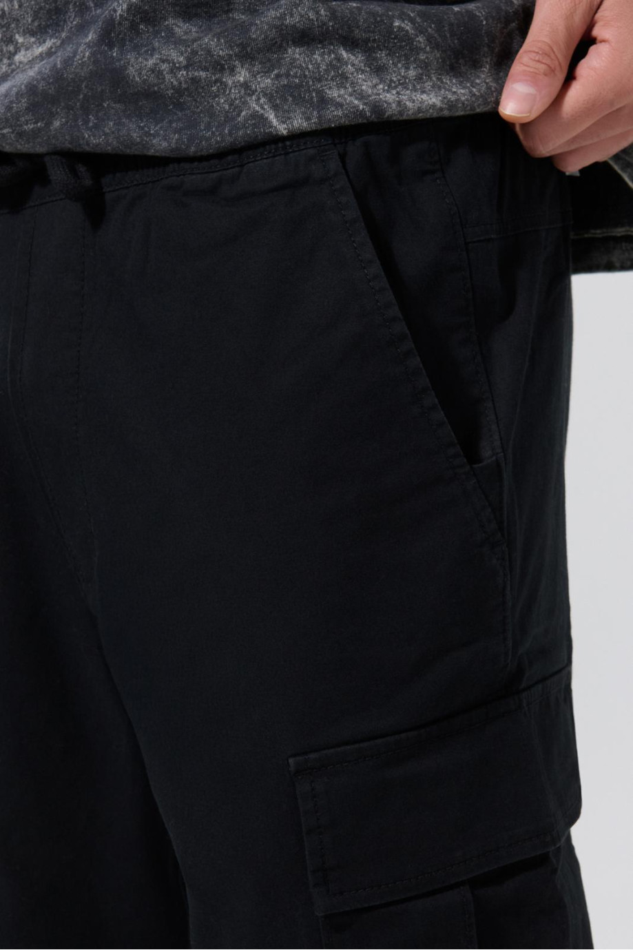 Pantalón en dril cargo unicolor con cintura ajustable