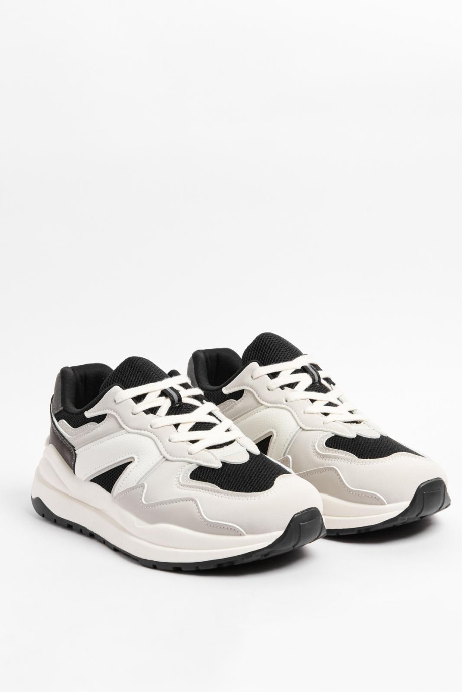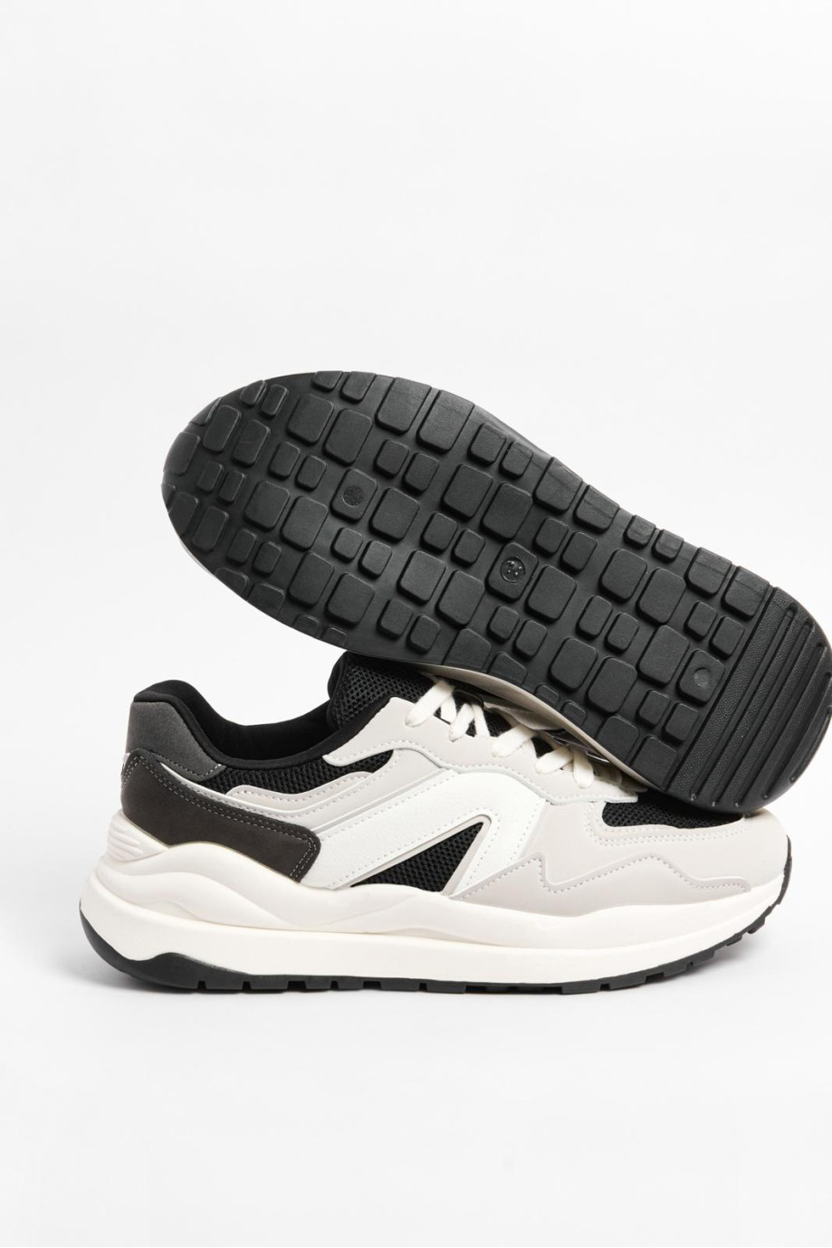 Tenis negros de plataforma para hombre cuentan con sistema de cierre con cordones, suelas elevadas gruesas y detalles con paneles en contraste. Este es un calzado fácil de combinar que debes tener, lúcelos con un par de medias cortas y deja que la comodidad te acompañe en cada paso que des.