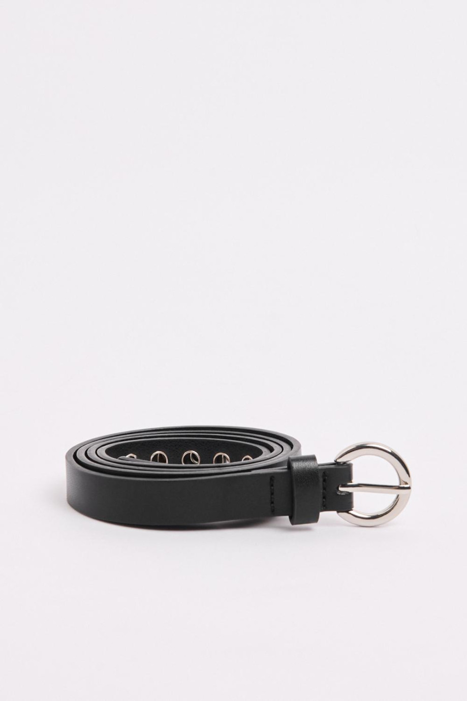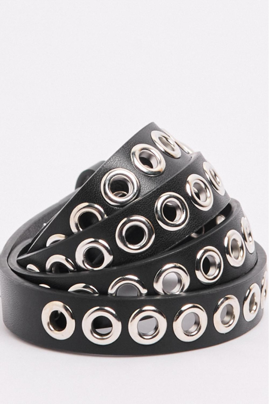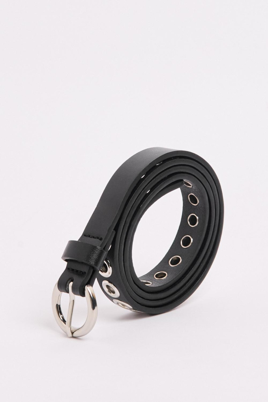 Cinturón femenino, cuenta con un diseño atemporal y contemporáneo, adornado con ojáletes metálicos a lo largo de toda su superficie que aportan un toque único. La hebilla plateada añade brillo y contraste, este cinturón es el accesorio ideal para añadir un toque de impacto a tus looks. Perfecto para resaltar tus jeans favoritos o definir la cintura de tus vestidos, este cinturón es un reflejo de t