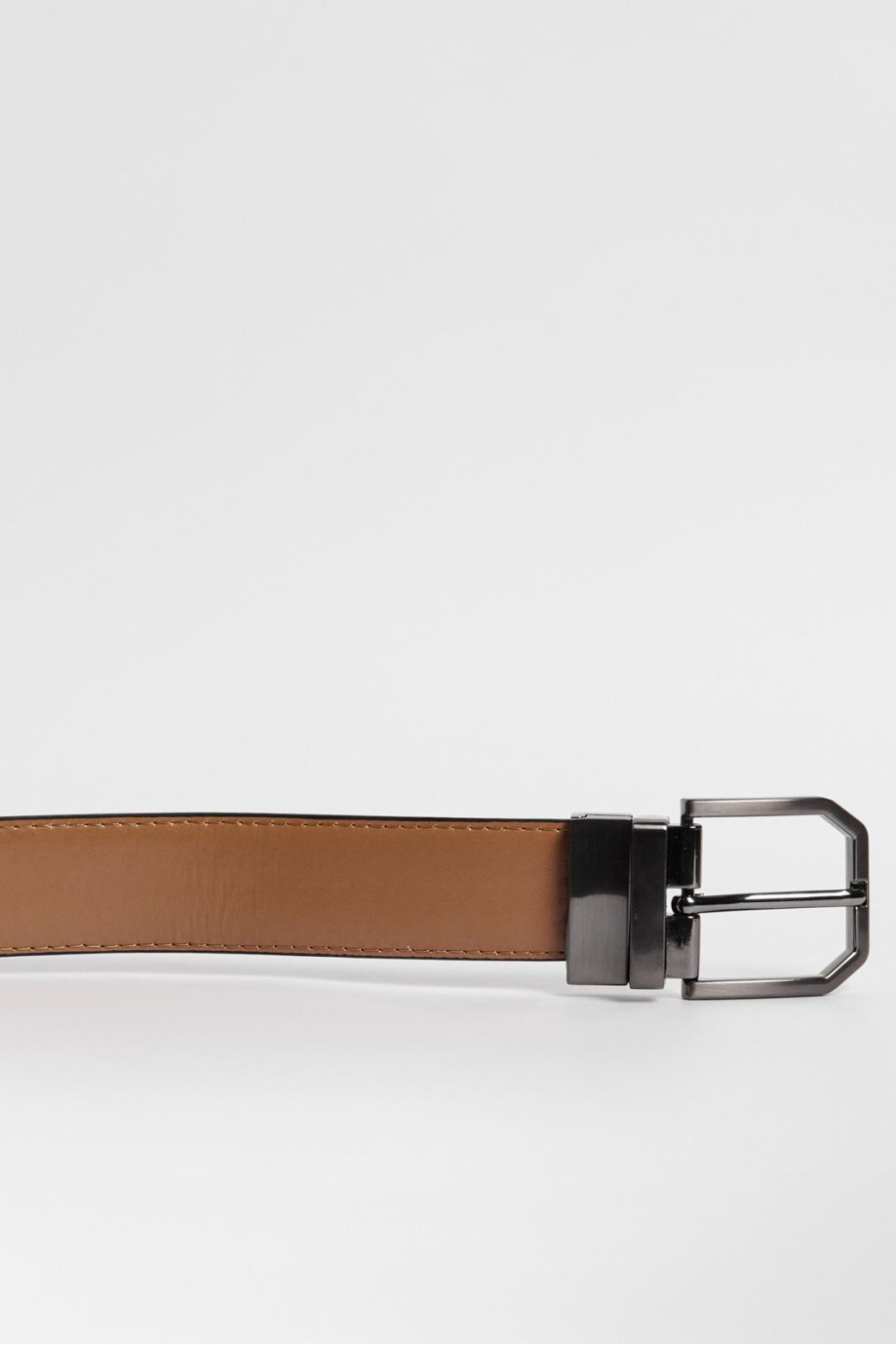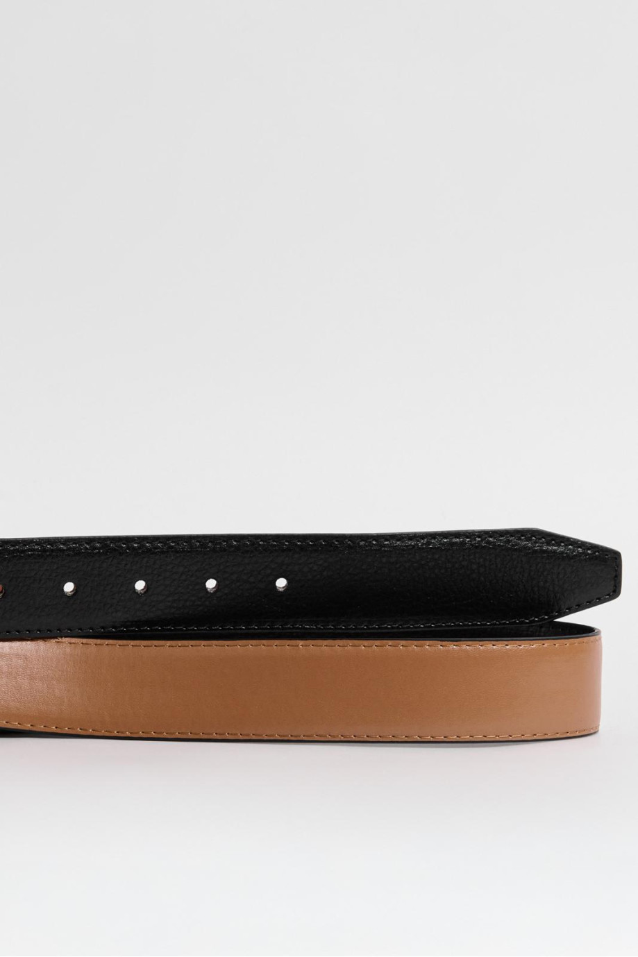 Cinturón negro reversible para mujer, elaborado en material sintético, cuenta con hebilla metálica cuadrada con trabilla incorporada y detalles con texturas. ¡Este accesorio tiene un estilo moderno que te encantará! Combínalo con tus jeans KOAJ preferidos y lúcela en un plan casual con amigos.