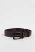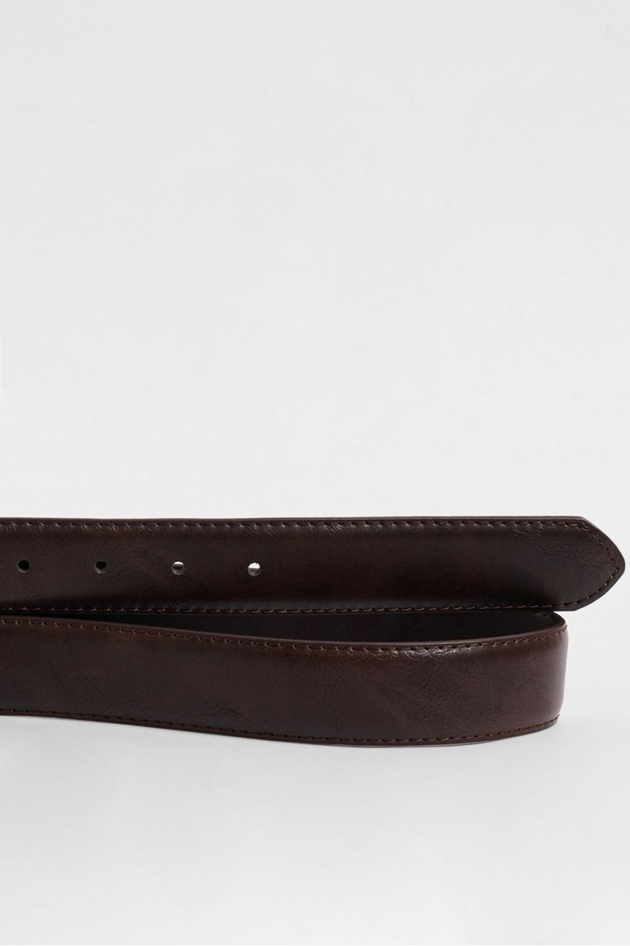 Cinturón café oscuro con doble trabilla y hebilla negra