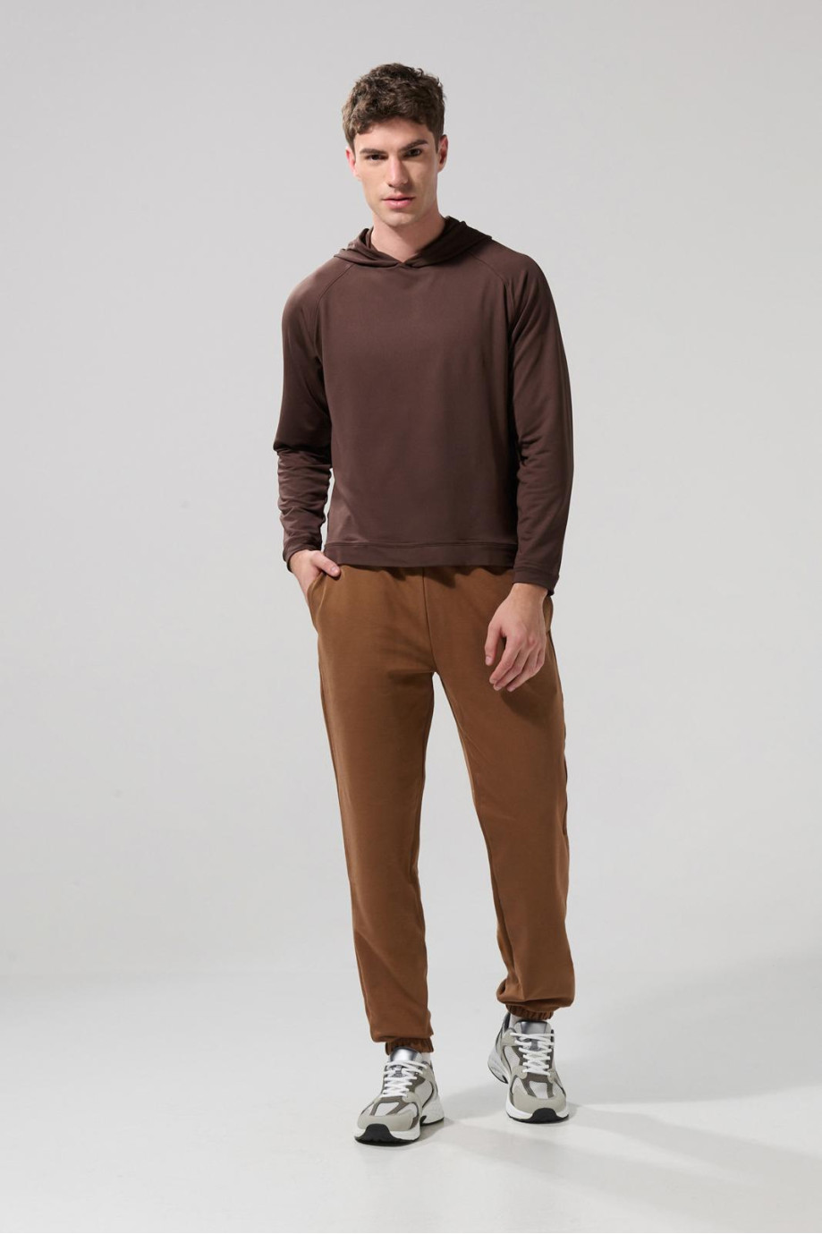 Buzo con capota unicolor y manga ranglan larga