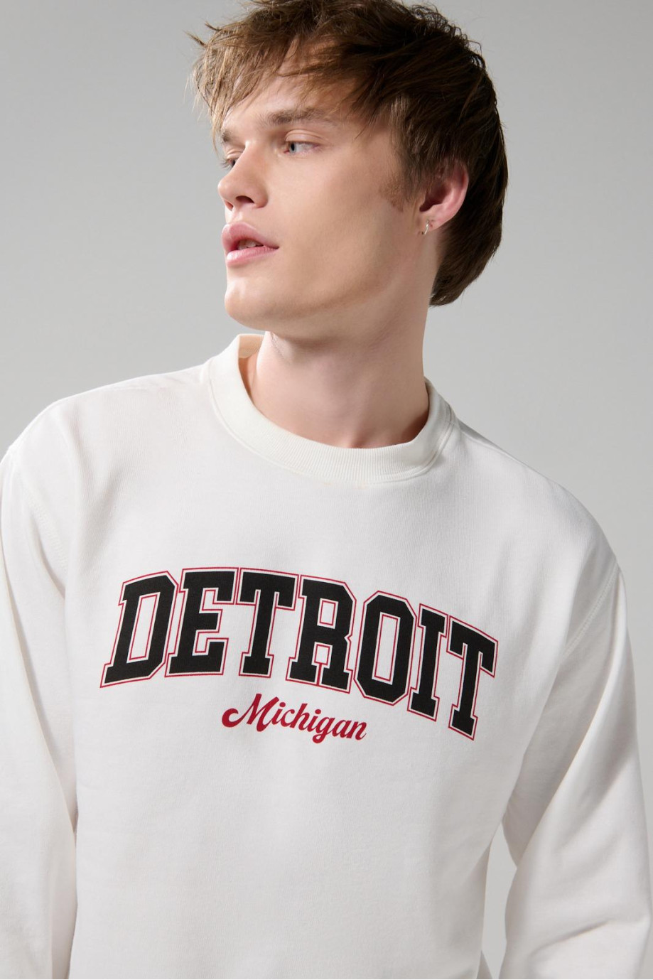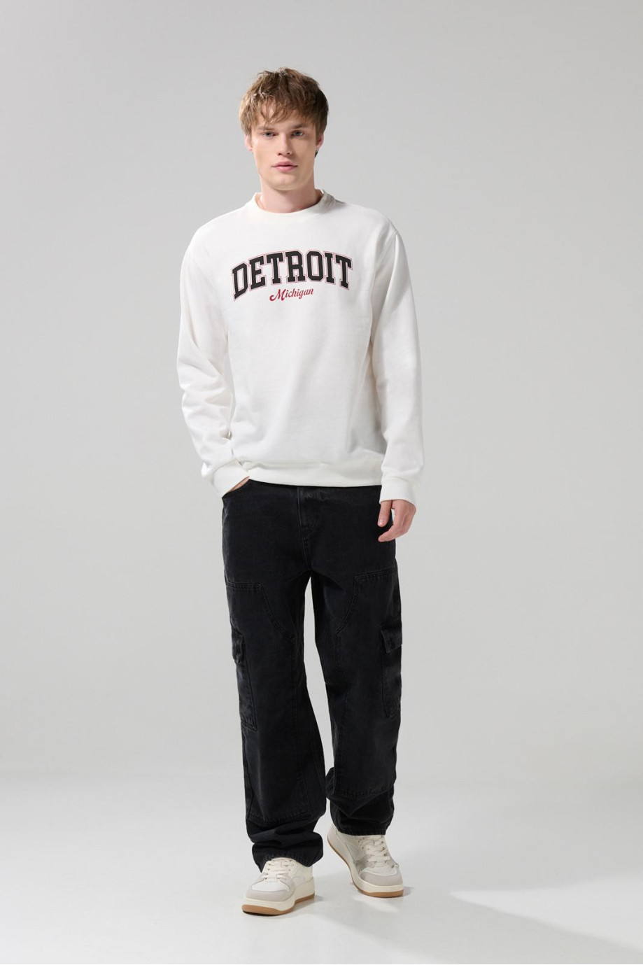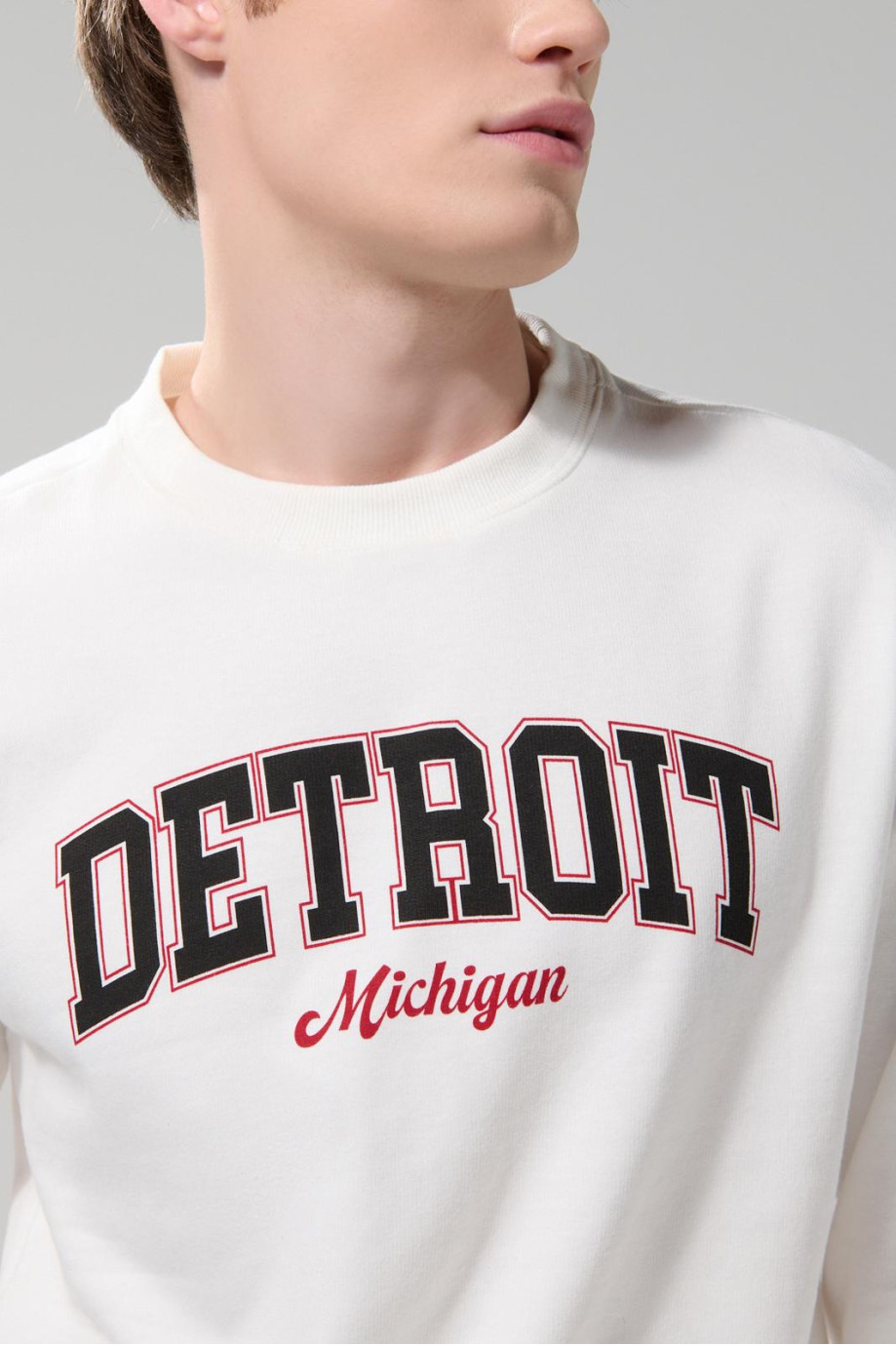Buzo crema claro para hombre cuenta con bordes de ruedo y puños tejidos en rib, manga larga, diseño de texto college estampado en frente y una silueta ajustada en el cuerpo. Luce tu mejor versión con esta prenda, una infaltable que podrás combinar con jeans KOAJ negros de diferentes estilos.