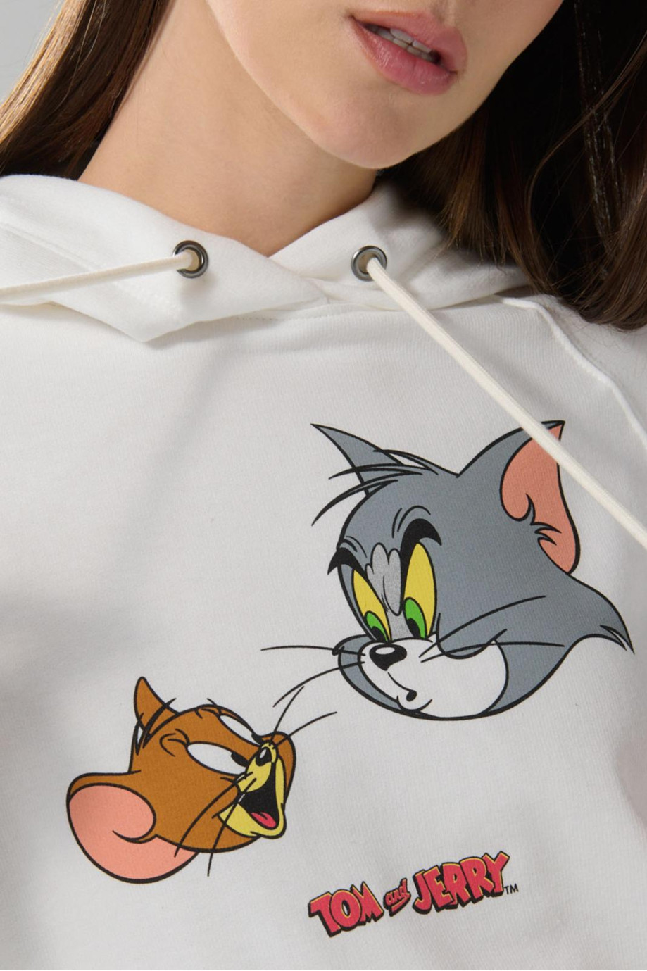 Buzo oversize de Tom y Jerry crema con capota y manga ranglan