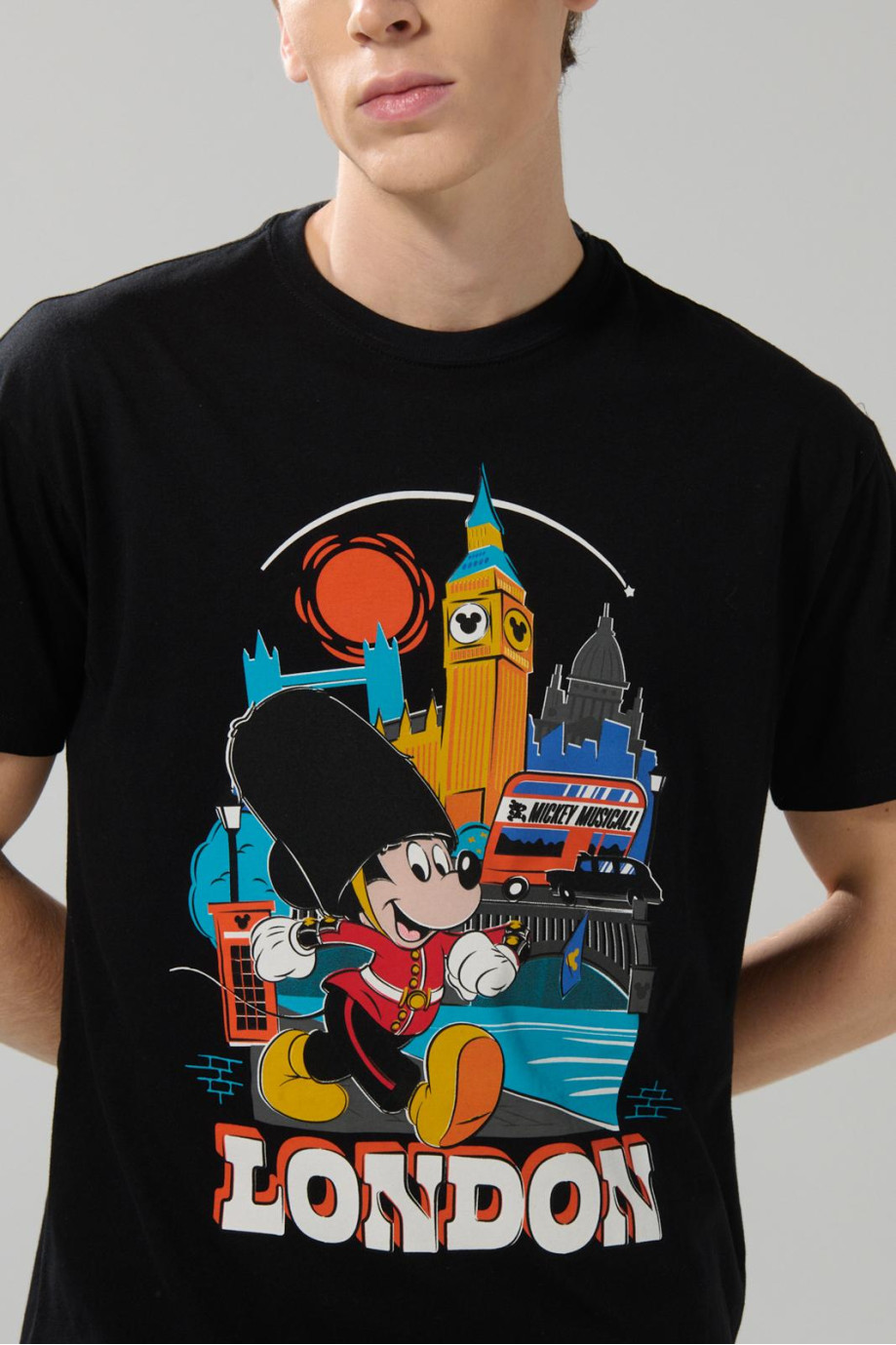 Camiseta cuello redondo negra con arte de Mickey