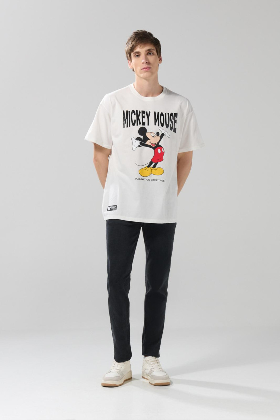 Camiseta para hombre manga corta crema clara cuenta con hombro caído, cuello redondo, diseño de Mickey (Disney) localizado en frente y una silueta oversize en el cuerpo. Crea un outfit fiel a tu estilo combinando esta prenda con tus jeans o bermudas favoritas. ¡Marcarás la diferencia!