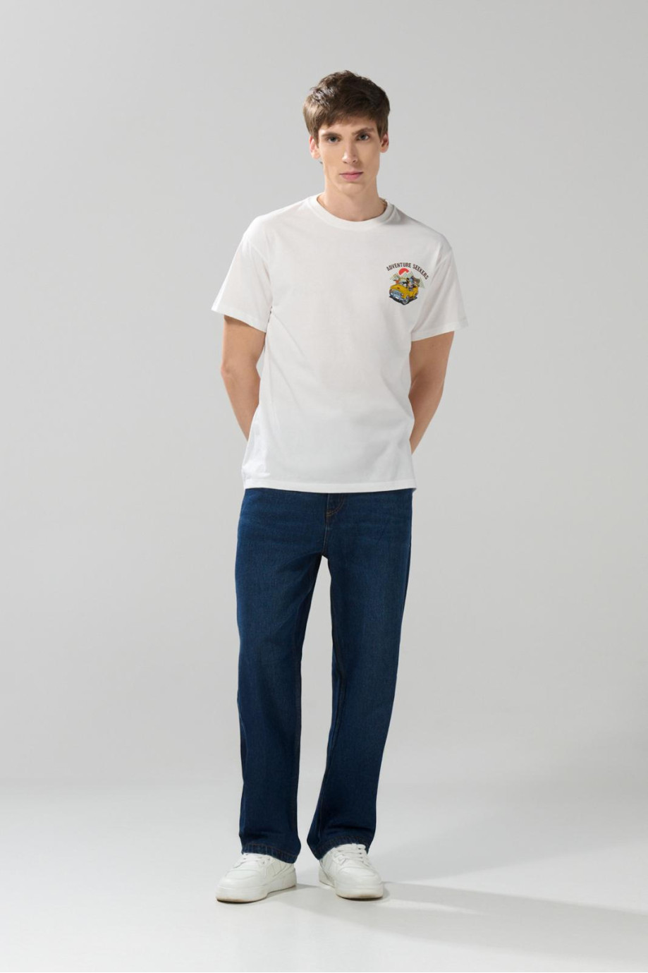 Camiseta cuello redondo crema con artes de Mickey