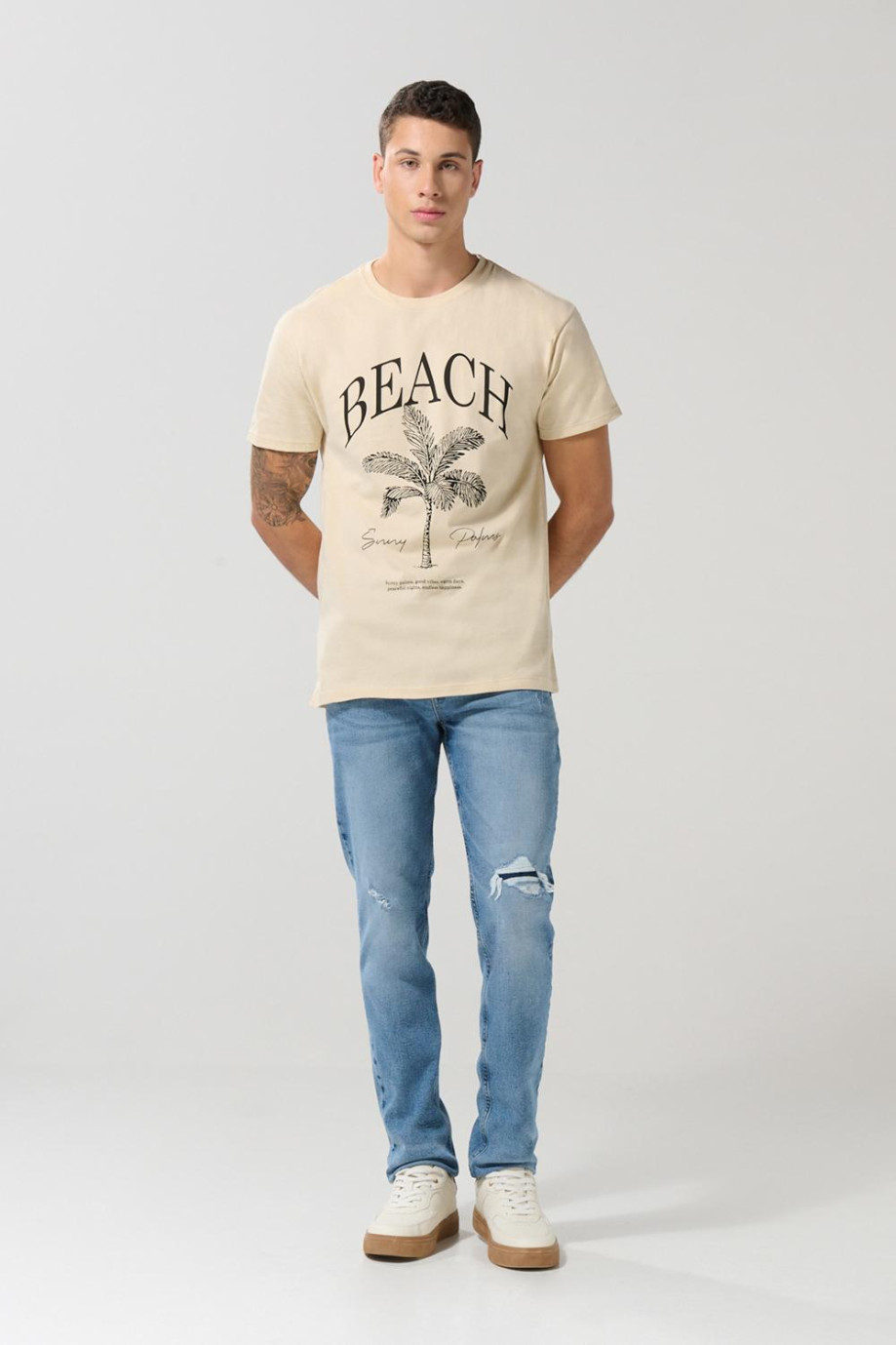 Camiseta unicolor manga corta para hombre, elaborada en tela de algodón y con una horma holgada, cuenta con cuello redondo, diseño de paisaje en frente y hombro rodado. Ideal para los viernes casuales, podrás combinarla con tu mejor jean KOAJ y darle una pizca moderna a tu estilo.