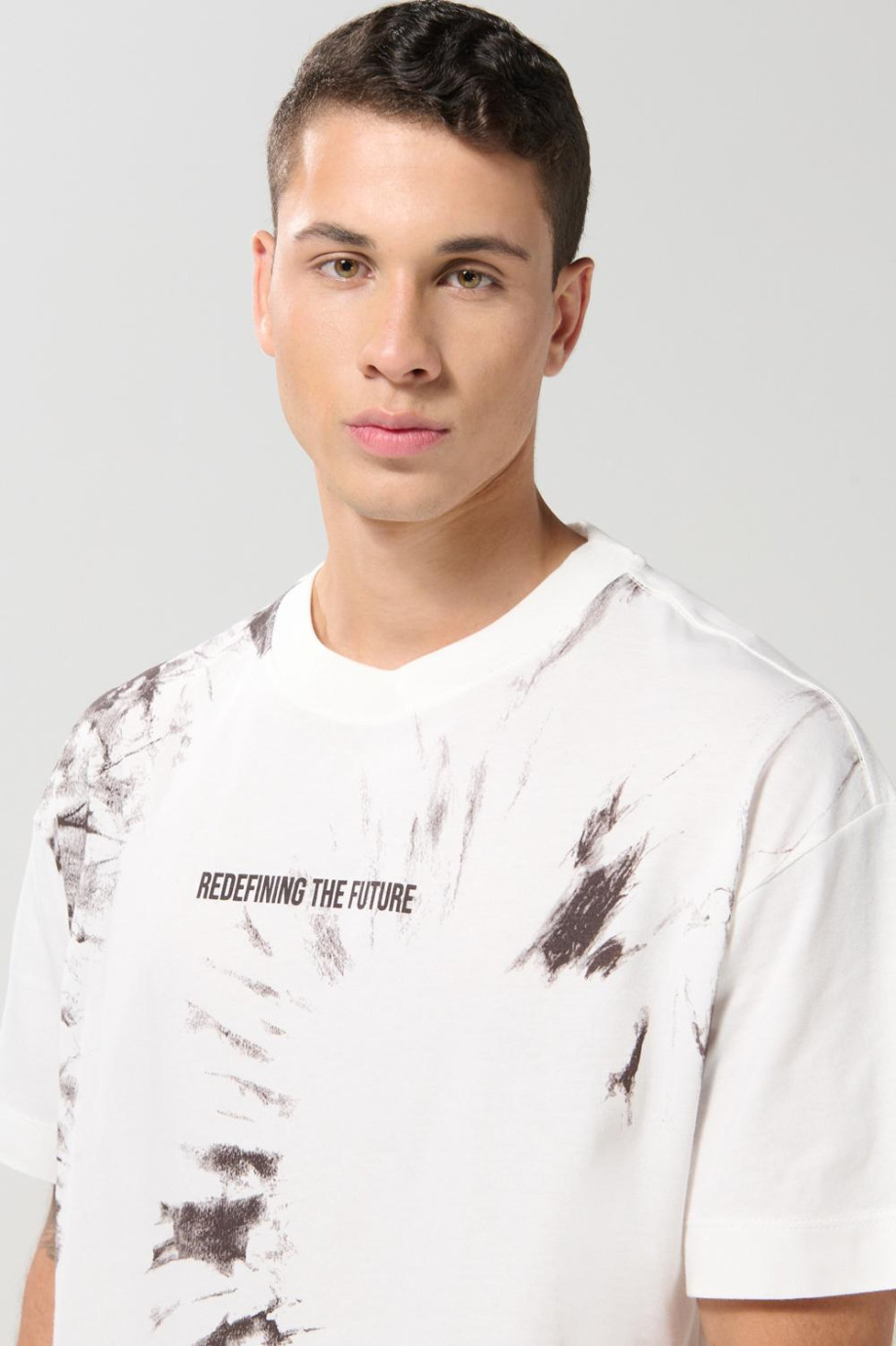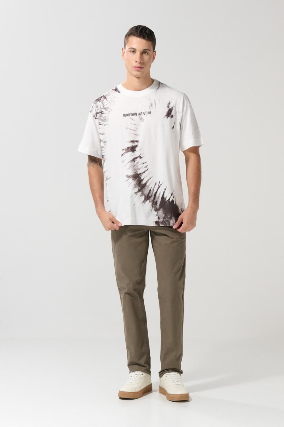 Camiseta para hombre manga corta crema clara, elaborada en tela de algodón, cuenta con cuello redondo, hombro caído, diseños estampados y una silueta oversize en el cuerpo. ¡Esta es la prenda que tu estilo pide a gritos! Combínala con un jean slim y crea un outfit juvenil con el que marques la diferencia.