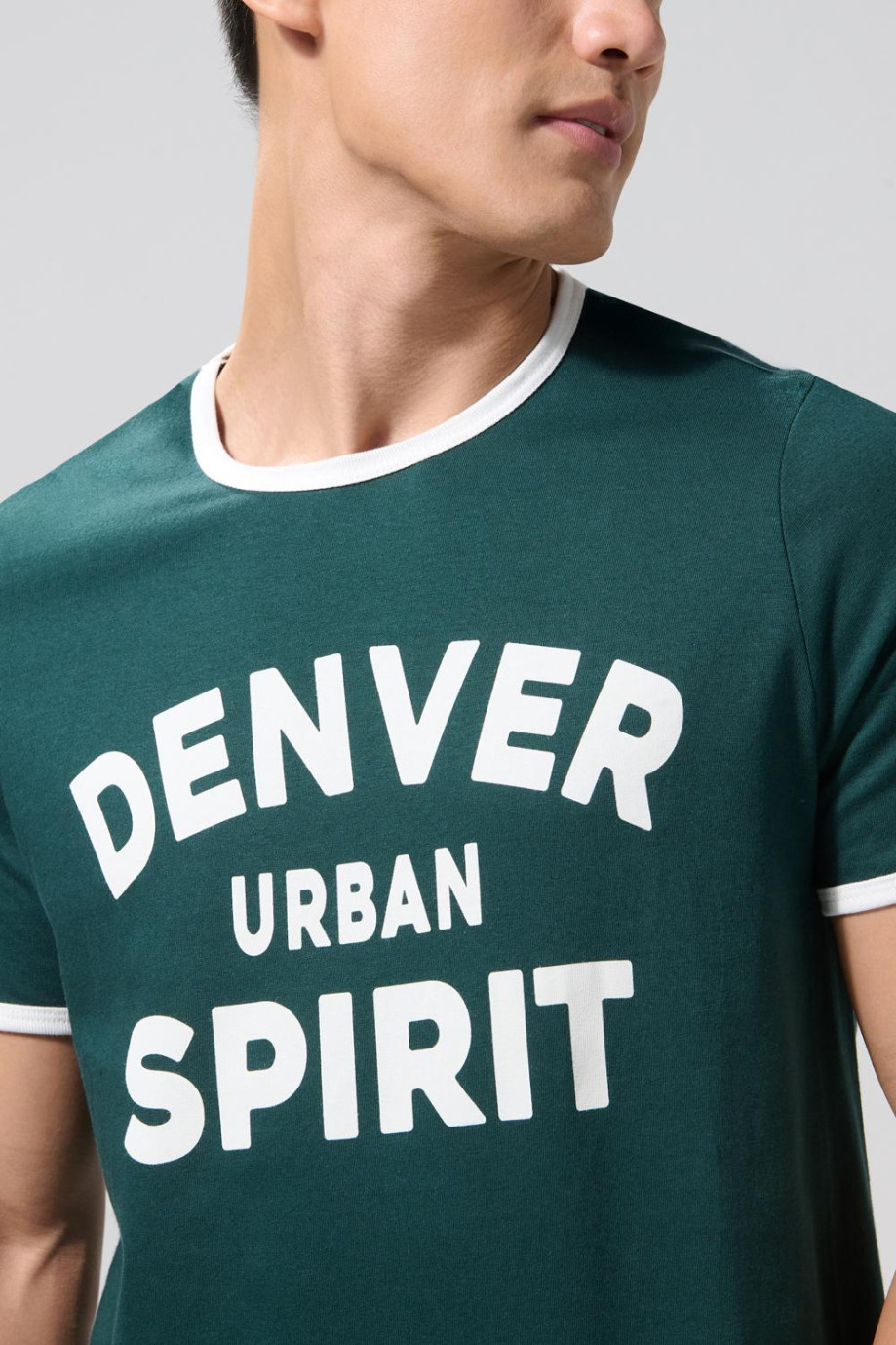 Camiseta para hombre en tono verde oscura cuenta con contrastes blancos en cuello redondo y puños, manga corta, diseño college en frente y un fit ligeramente ajustado en el cuerpo. ¡Luce inigualable con esta prenda! Con un jean slim y una chaqueta bomber crearás un outfit auténtico.