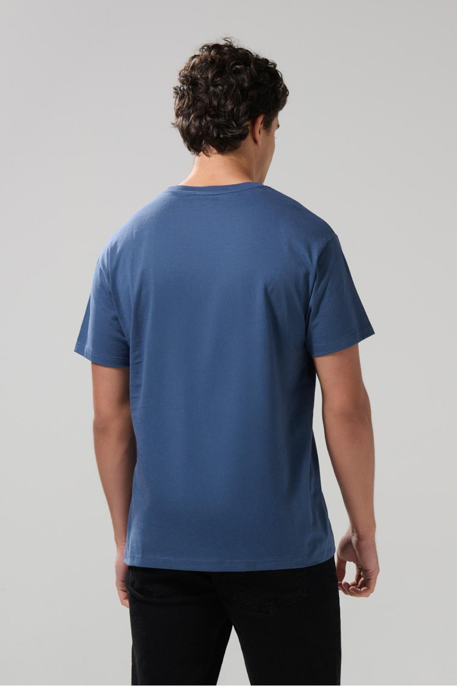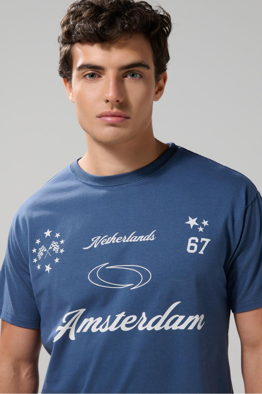Camiseta manga corta azul oscura para hombre, confeccionada en tela de algodón, cuenta con hombro rodado, cuello redondo, diseño college en frente y un ajuste holgado en el cuerpo. Esta prenda, combinada con un jean skinny, harán un match perfecto en tu total look. ¡Te verás espectacular!