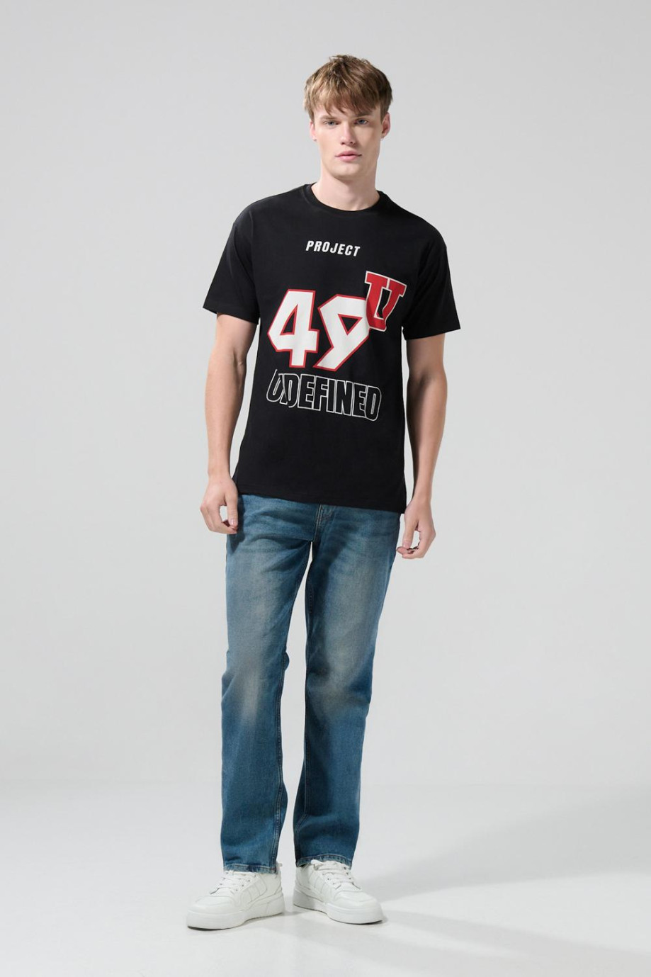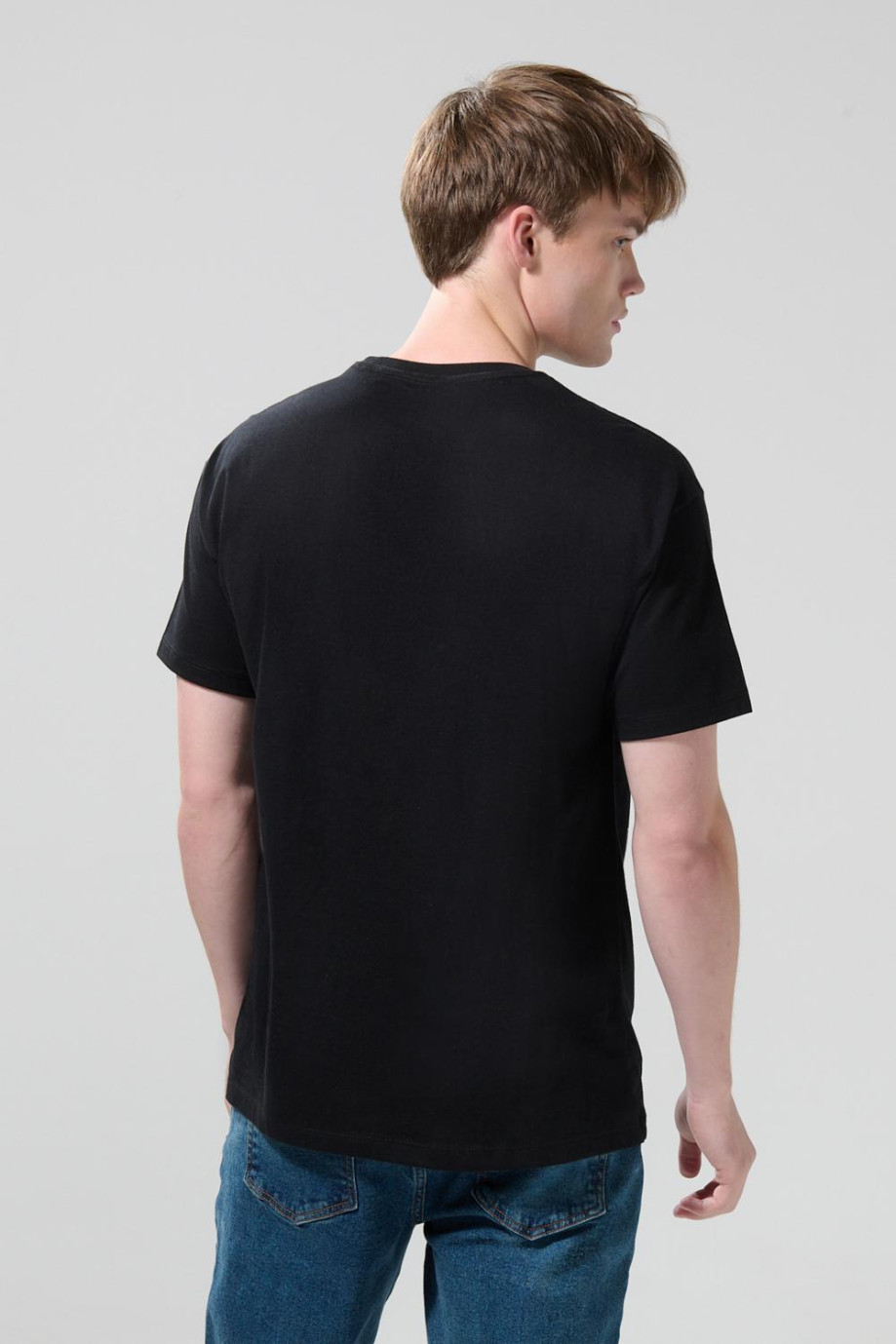 Camiseta negra para hombre, confeccionada en tela de algodón y con una silueta holgada, cuenta con arte college delantero, cuello redondo, manga corta y hombro rodado. Luce juvenil en todo momento combinándolo con tus jeans o bermudas KOAJ favoritas, así le darás una nueva identidad a tu propio estilo.