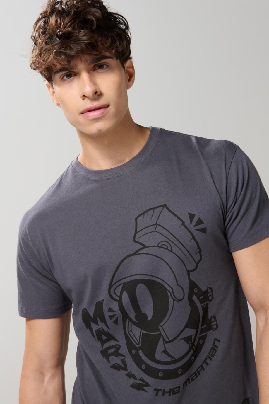 Camiseta para hombre manga corta gris intensa cuenta con estampado de Marvin (Looney Tunes) en frente, hombro rodado, cuello redondo y una silueta holgada en el cuerpo. Esta prenda renovará tu guardarropa, combínala con tus jeans Koaj favoritos y crea atuendos perfectos para todos los días.