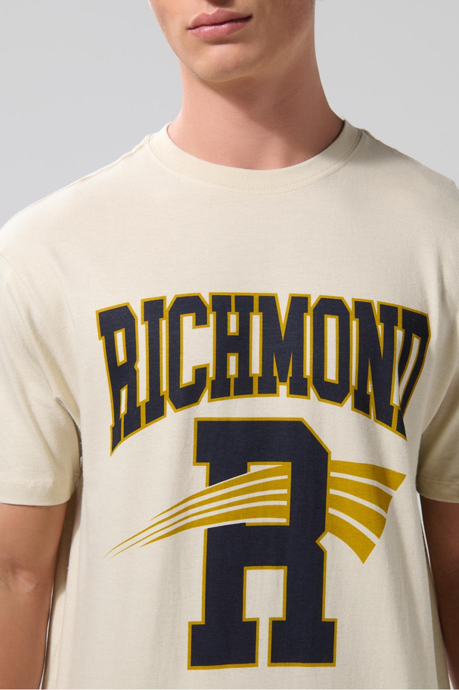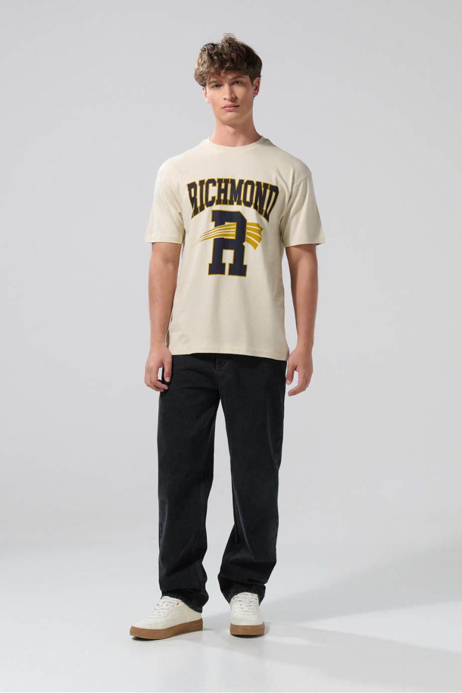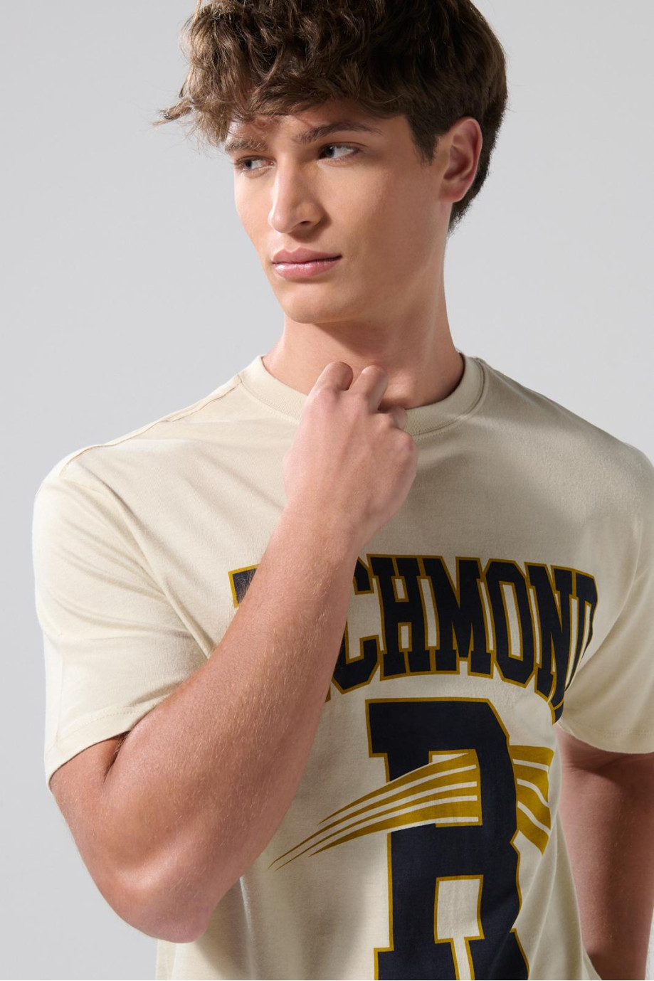 Camiseta cuello redondo para hombre en tono kaki clara cuenta con arte college localizado en frente, manga corta, hombro rodado y un fit ligeramente holgado en el cuerpo. ¿Qué tal si la combinas con una bermuda en jean? Crearás un look juvenil con el que lucirás fresco en todo momento.