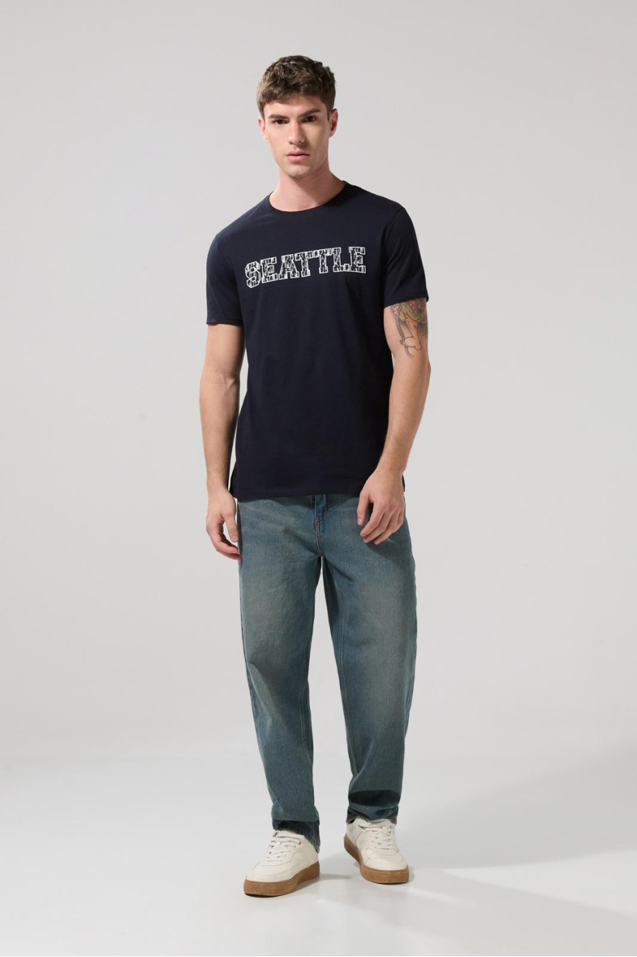 Camiseta azul intensa para hombre cuenta con texto college estampado en frente, cuello redondo, manga corta y un fit que se ajustará al cuerpo en la medida precisa. Lleva las últimas tendencias en tu total look combinando esta prenda con tu mejor jean KOAJ. ¡Lucirás espectacular!