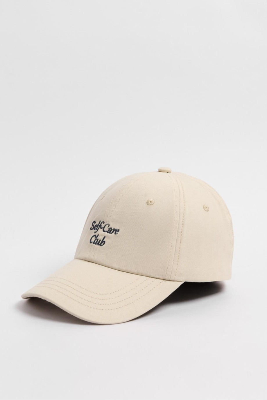 Cachucha beisbolera crema clara para mujer cuenta con cierre posterior con trabilla, diseño de texto bordado en frente y visera curva. Perfecta para los días soleados, podrás lucirla con tus camisetas KOAJ favoritas y brillar con tu atuendo moderno.