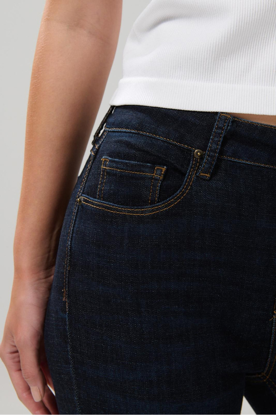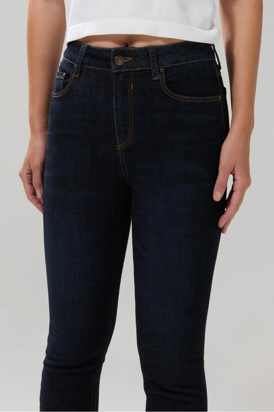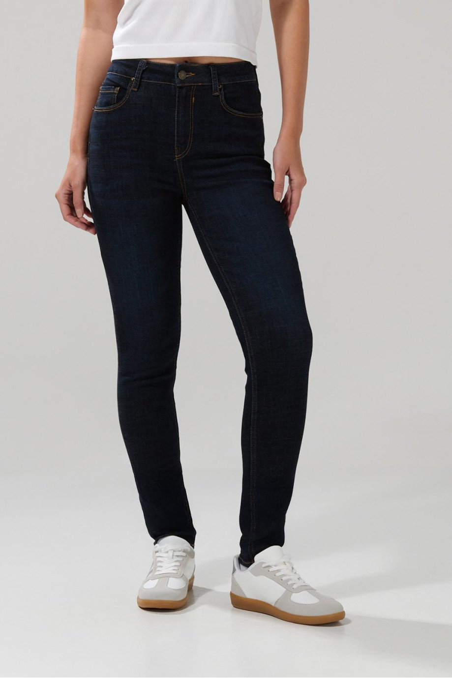 Jean azul intenso jegging tiro alto con cremallera en frente