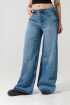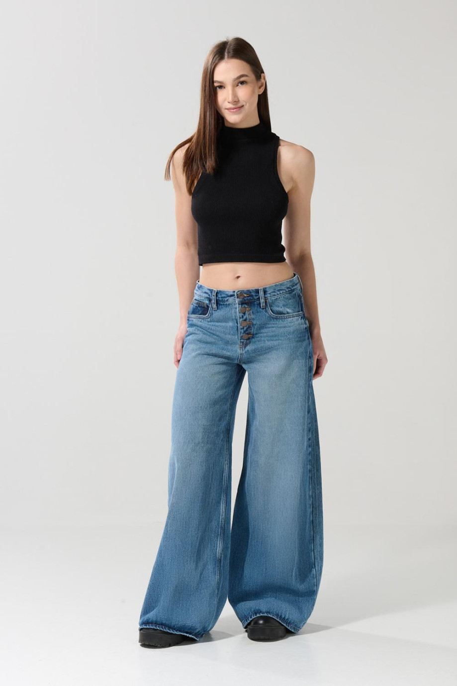 Jean azul claro palazzo para mujer cuenta con tiro medio, pretina con botón metálico, 5 bolsillos, rotos delanteros, bota ancha, desgastes sutiles de color y un fit holgado al cuerpo. ¿Buscas estar en tendencia con tu look? Con esta prenda estarás un paso más cerca de lograrlo. Combínala con tenis altos y luce estupenda.