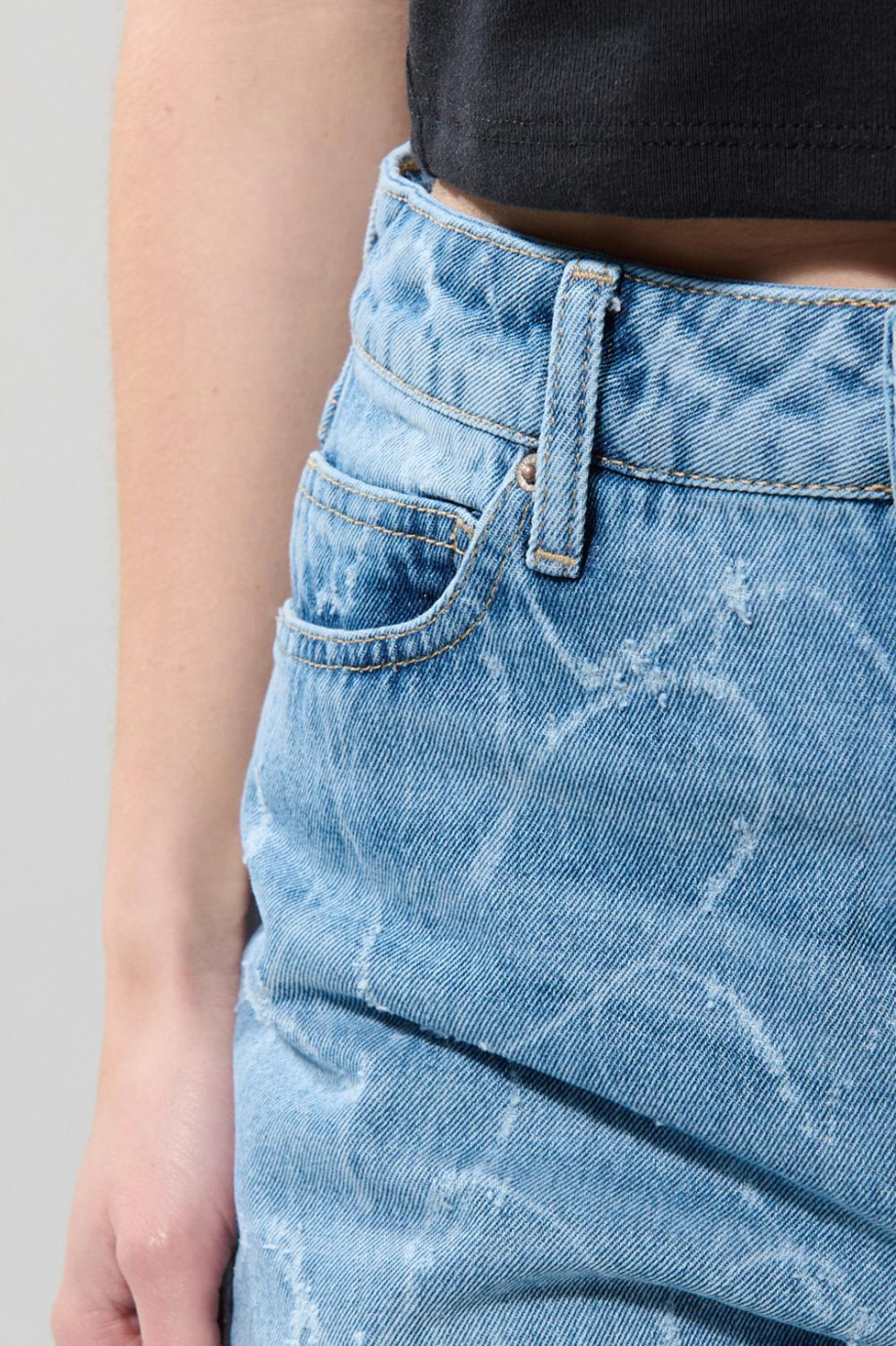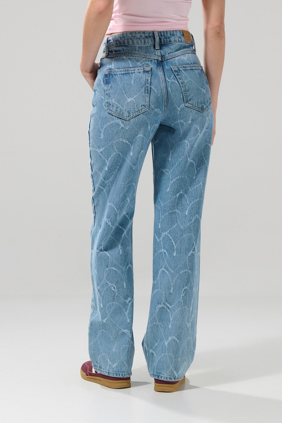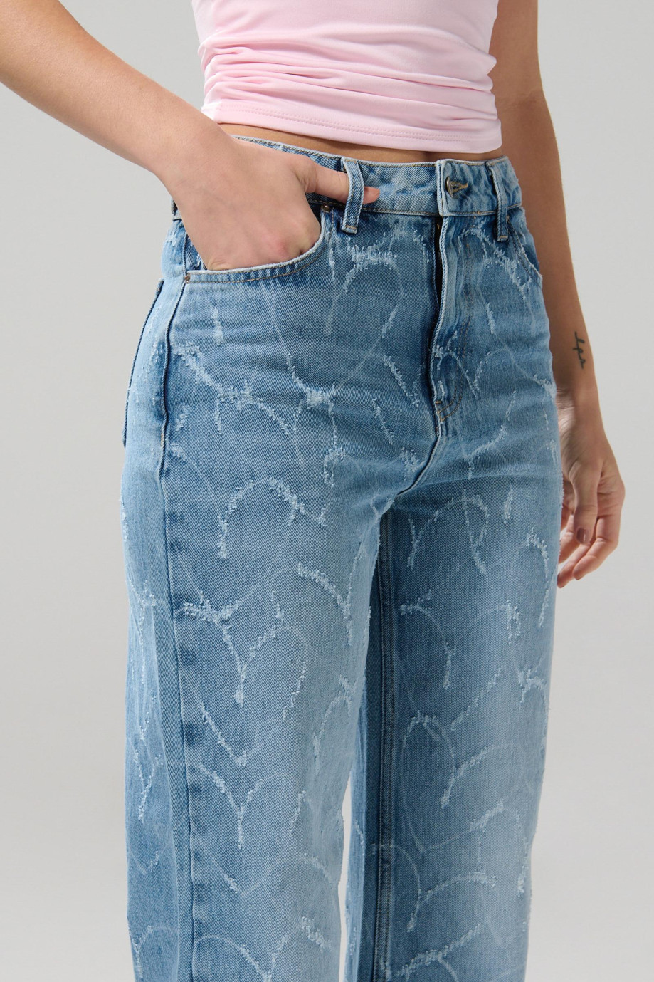 Jean azul claro 90´S con tiro alto y diseños de corazones