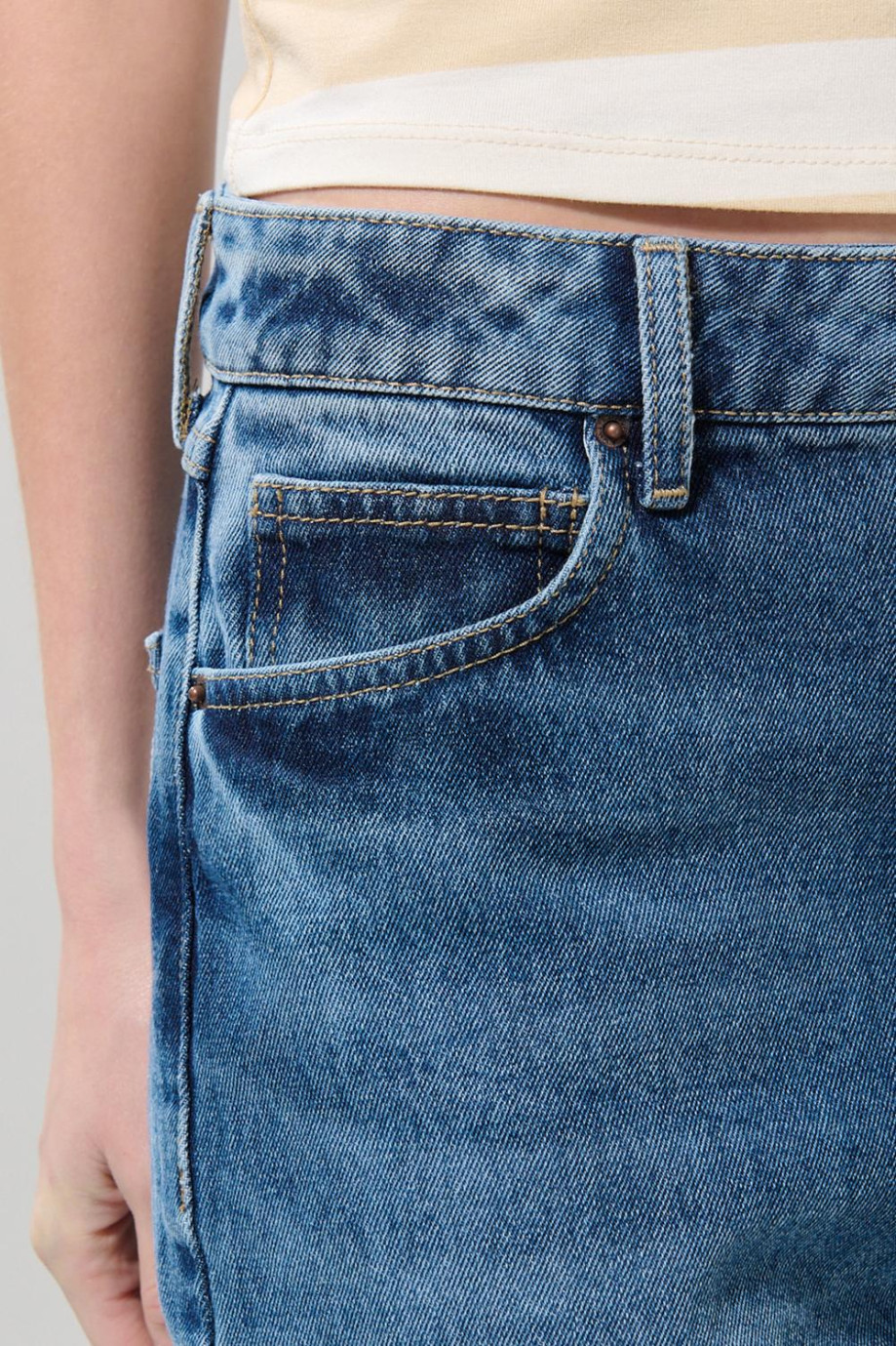 Jean 90´S azul medio tiro alto con bota recta y bolsillos