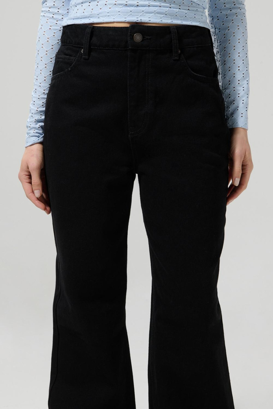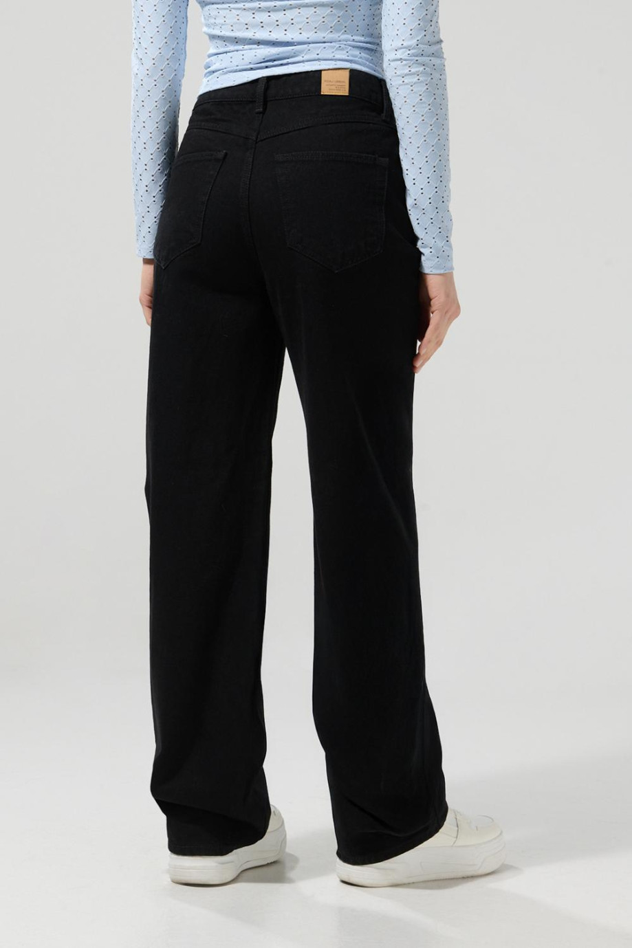 Jean 90´S para mujer en tono negro cuenta con bota recta, 5 bolsillos funcionales, tiro alto, pretina sencilla con botón metálico visible y una silueta holgada en el cuerpo. Dale a tu look un estilo minimalista con esta prenda, combínala con tu mejor blusa blanca y lleva tu outfit a tus planes con amigas en el centro comercial.