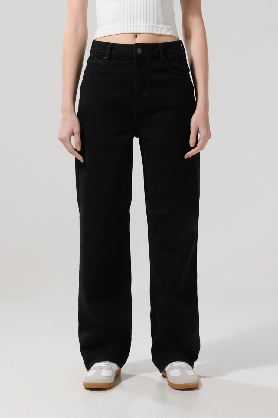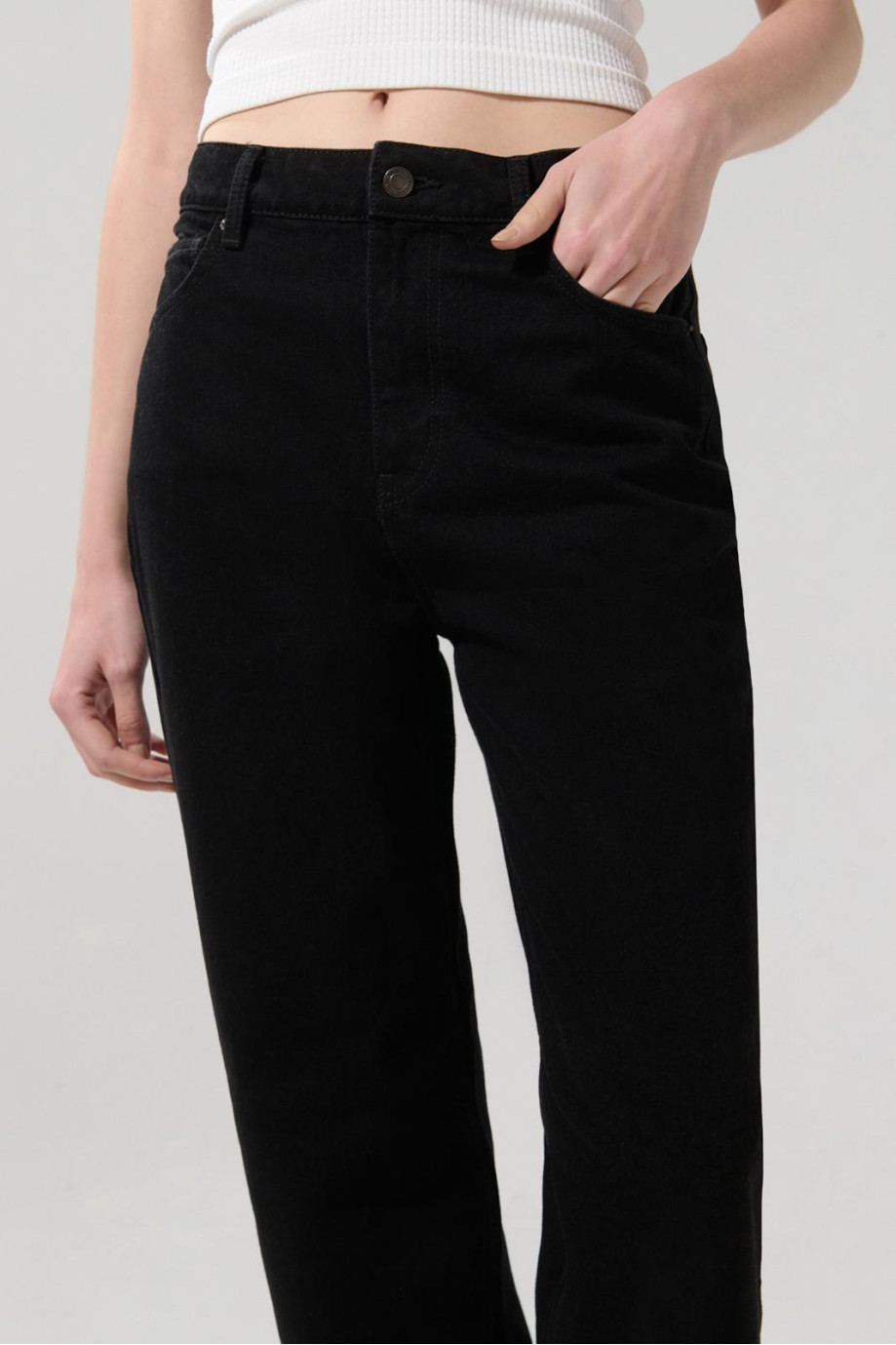 Jean negro bota recta 90’S con tiro alto y bolsillos