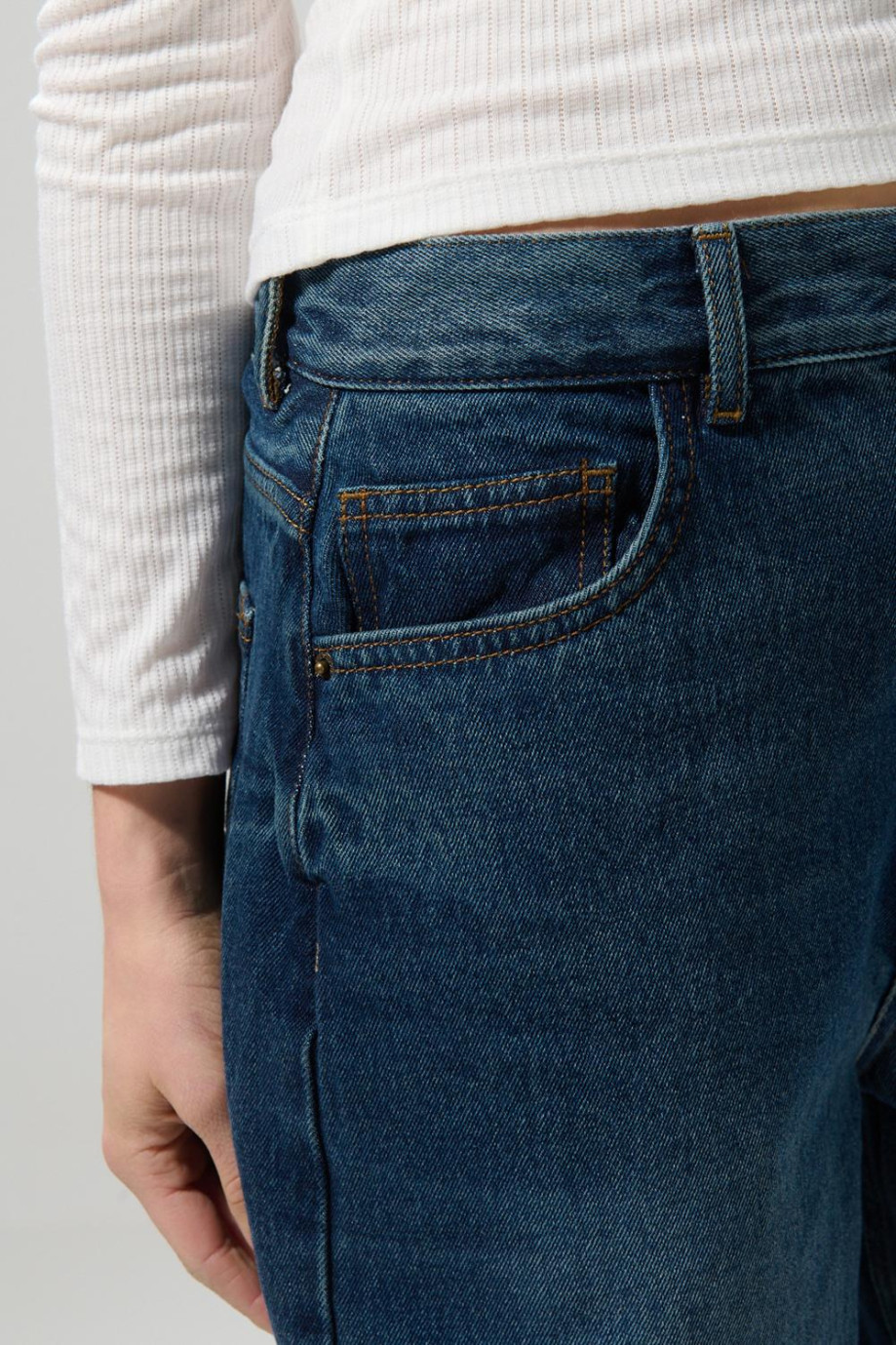 Jean azul oscuro baggy tiro medio con bota ancha y bolsillos