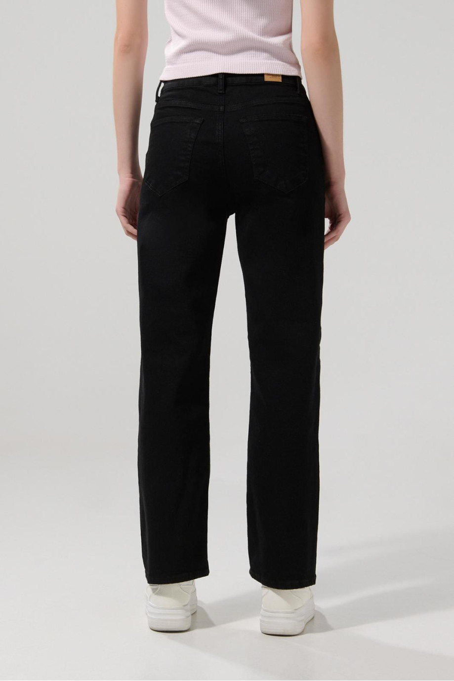 Jean negro straight leg bota recta con tiro alto y bolsillos