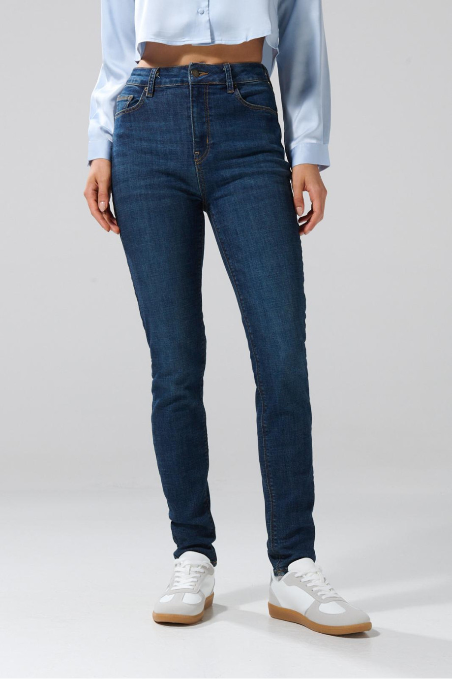 Jean jegging azul oscuro para mujer cuenta con tiro súper alto, 5 bolsillos, pretina con botón metálico, costuras visibles en contraste, cierre con cremallera oculta en frente y un fit ceñido al cuerpo. Infaltable en tu outfit, podrás lucirlo con tu blusa blanca favorita y marcar la diferencia en tus planes diarios o con amigos.