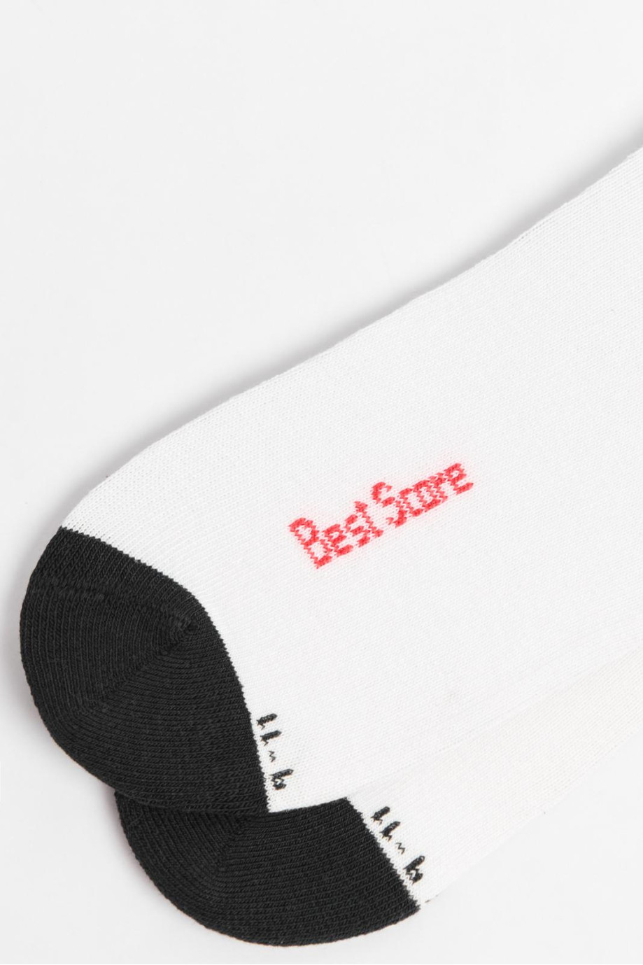 Medias cremas claras largas para mujer cuentan con contraste en la puntera, diseño de texto lateral, elástico en el borde superior y detalles con finas texturas de canal. Lúcelas con un par de tenis casuales y deja que el confort sea parte de tu estilo. ¡No vas a querer quitártelas!