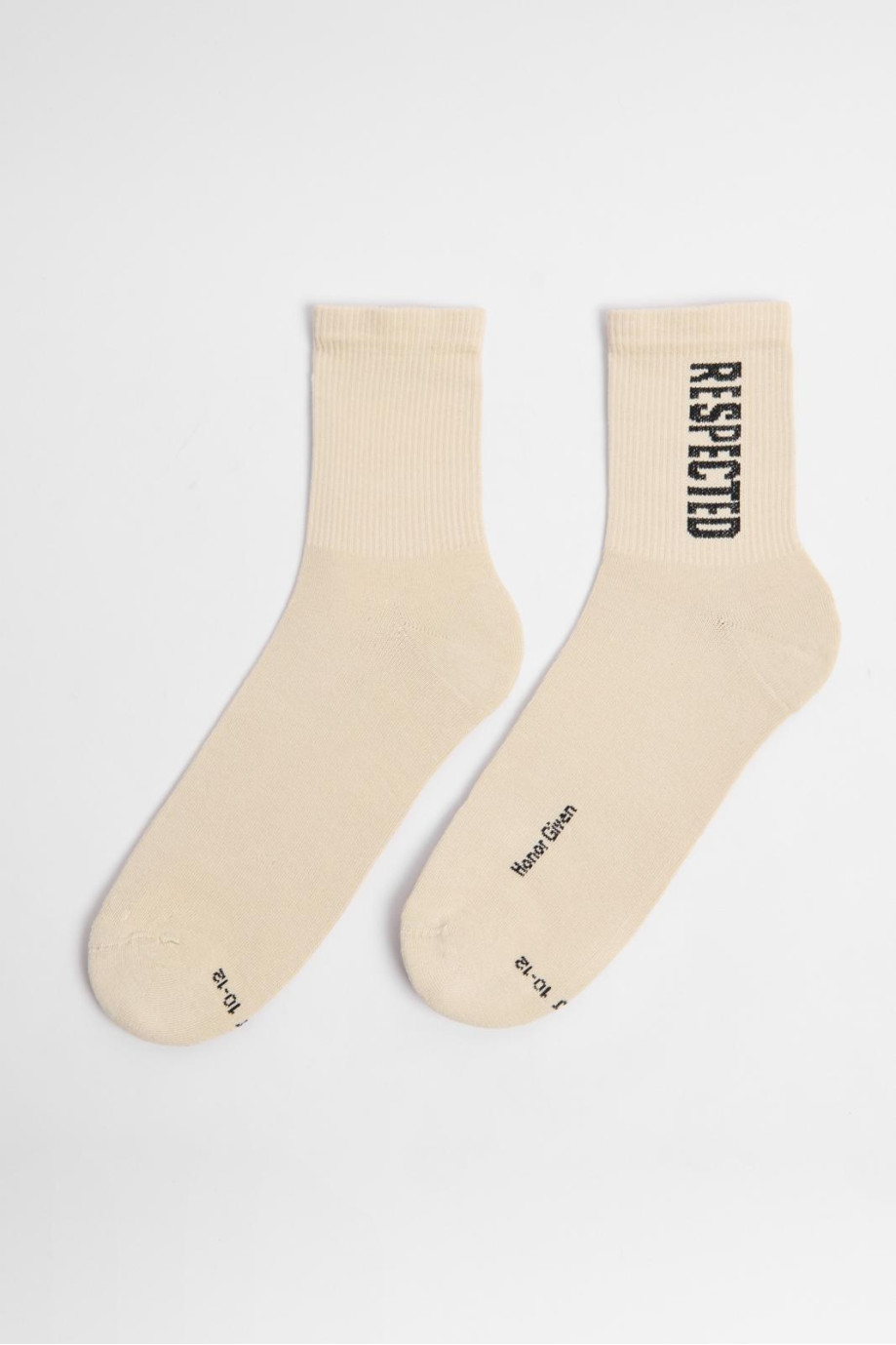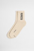 Medias largas kakis claras para mujer cuentan con elástico en el borde superior, diseño de texto negro lateral y finas texturas de canal. Dales confort a tus pies combinándolas con tus tenis KOAJ de diferentes estilos, así caminarás con plena comodidad.