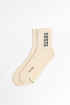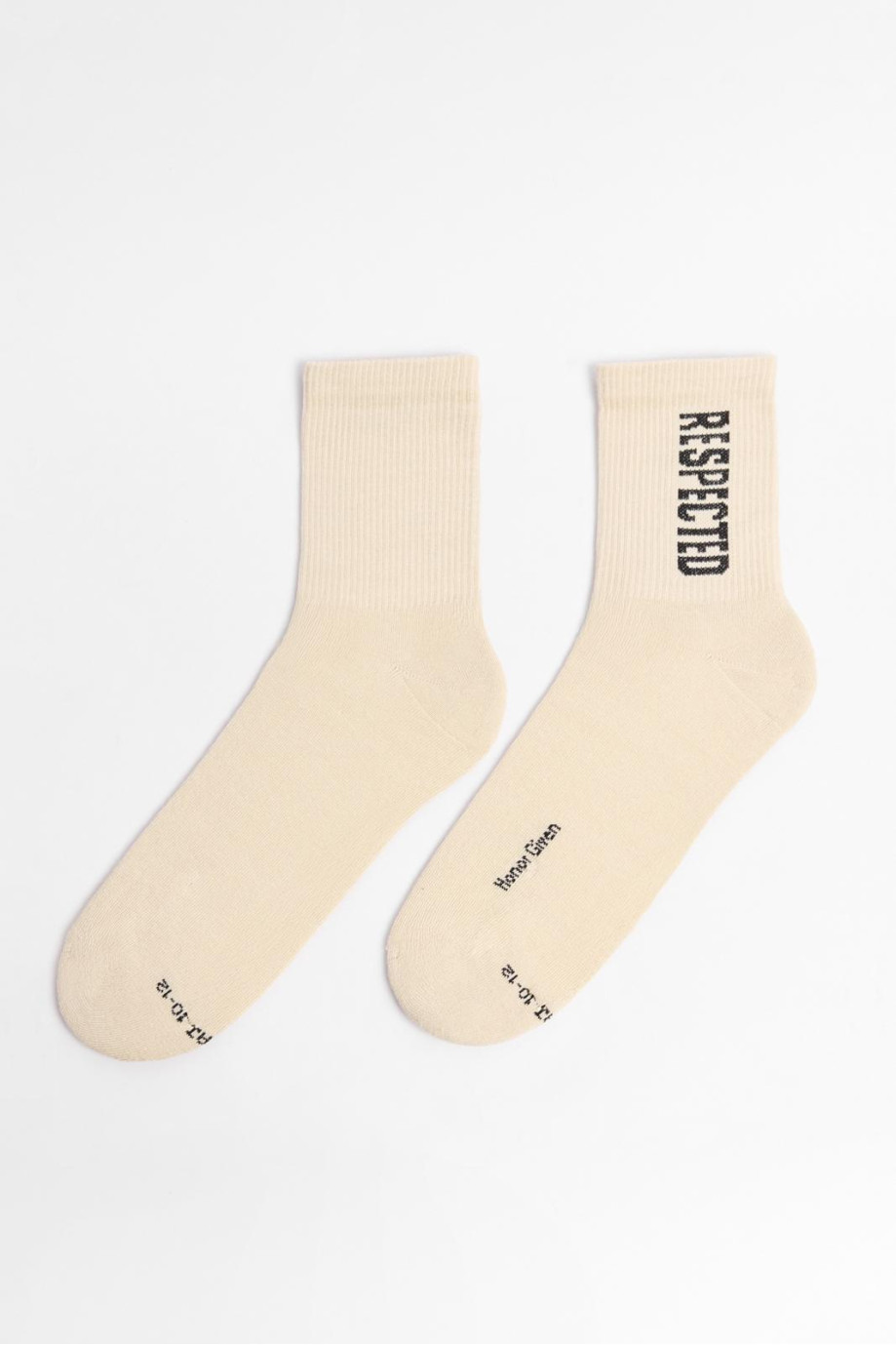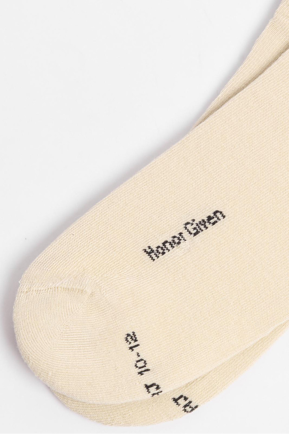 Medias kakis claras largas con diseño de texto negro