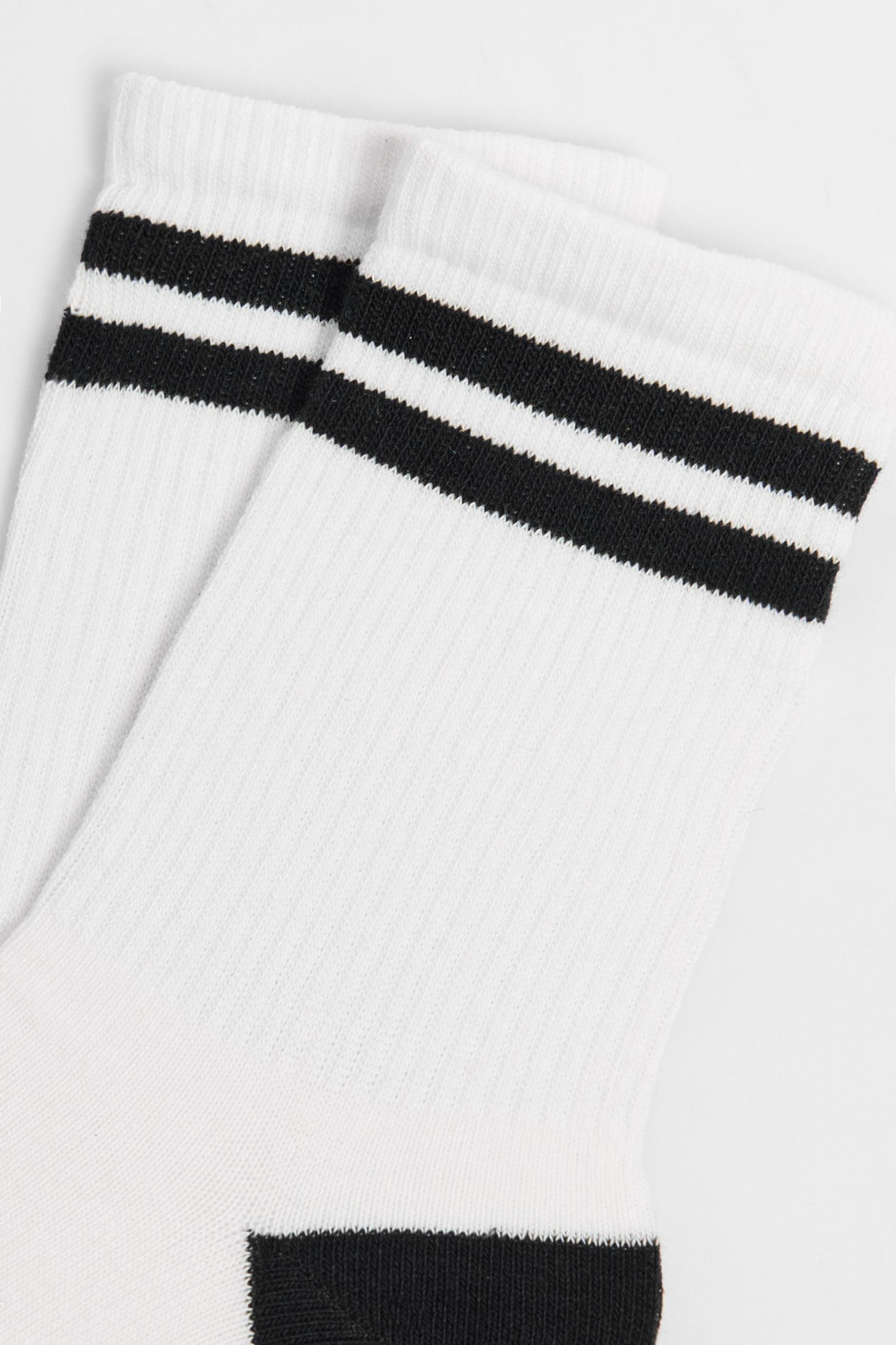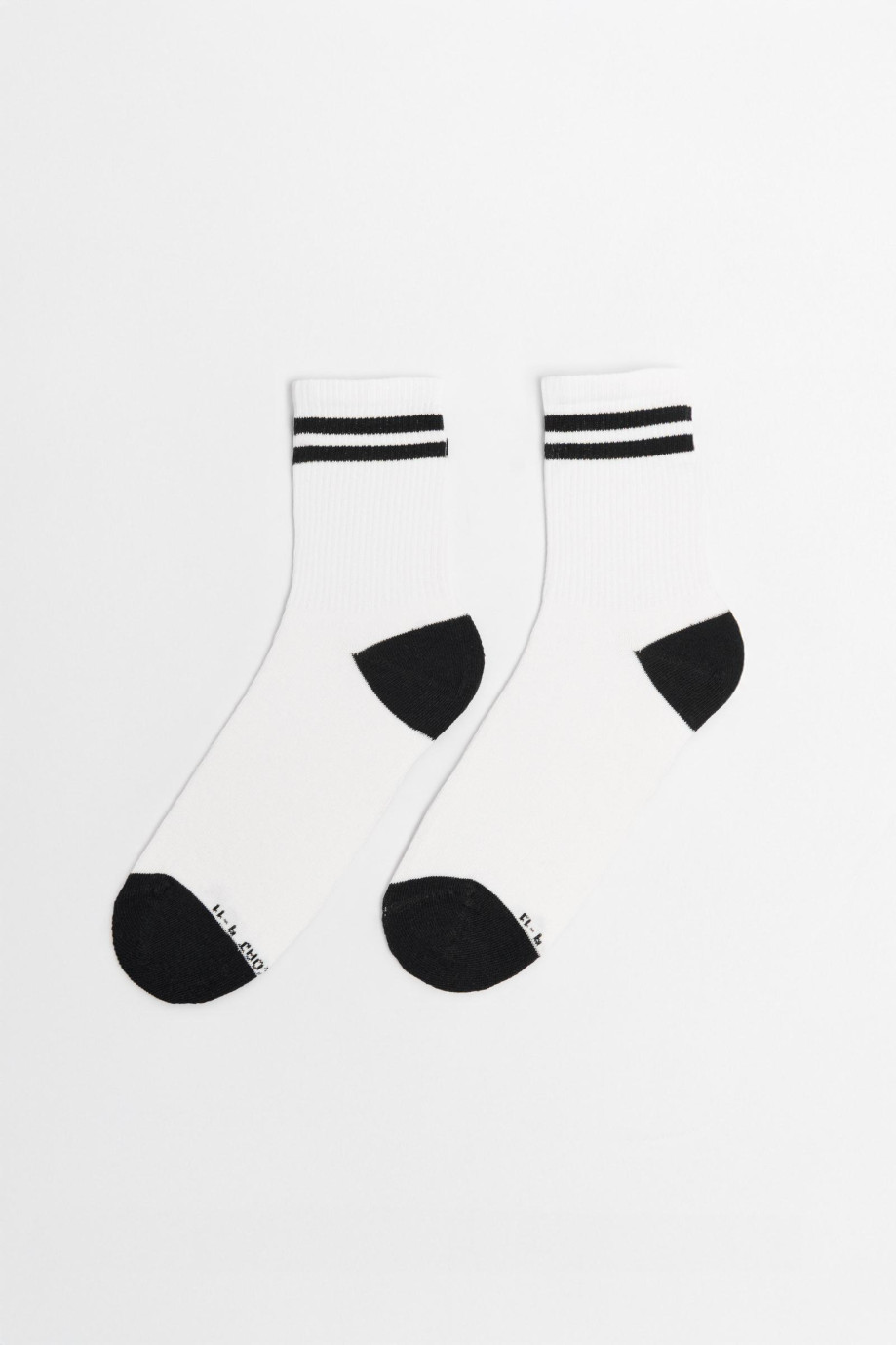 Medias unicolores largas para mujer cuentan con diseños de rayas en contraste, detalles con finas texturas acanaladas y elástico en el borde superior. Ideales para cualquier día de la semana, podrás lucirlas con un par de tenis planos y caminar con mucho estilo. ¡Tus pies se sentirán cómodos!
