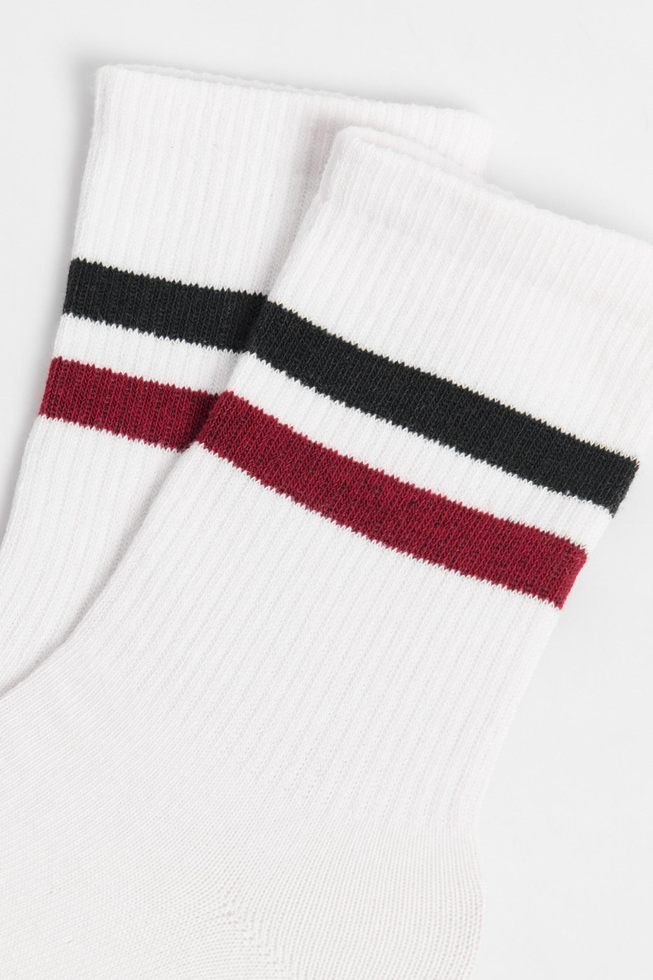 Medias unicolores largas para mujer cuentan con diseños de rayas en contraste, detalles con finas texturas acanaladas y elástico en el borde superior. Ideales para cualquier día de la semana, podrás lucirlas con un par de tenis planos y caminar con mucho estilo. ¡Tus pies se sentirán cómodos!