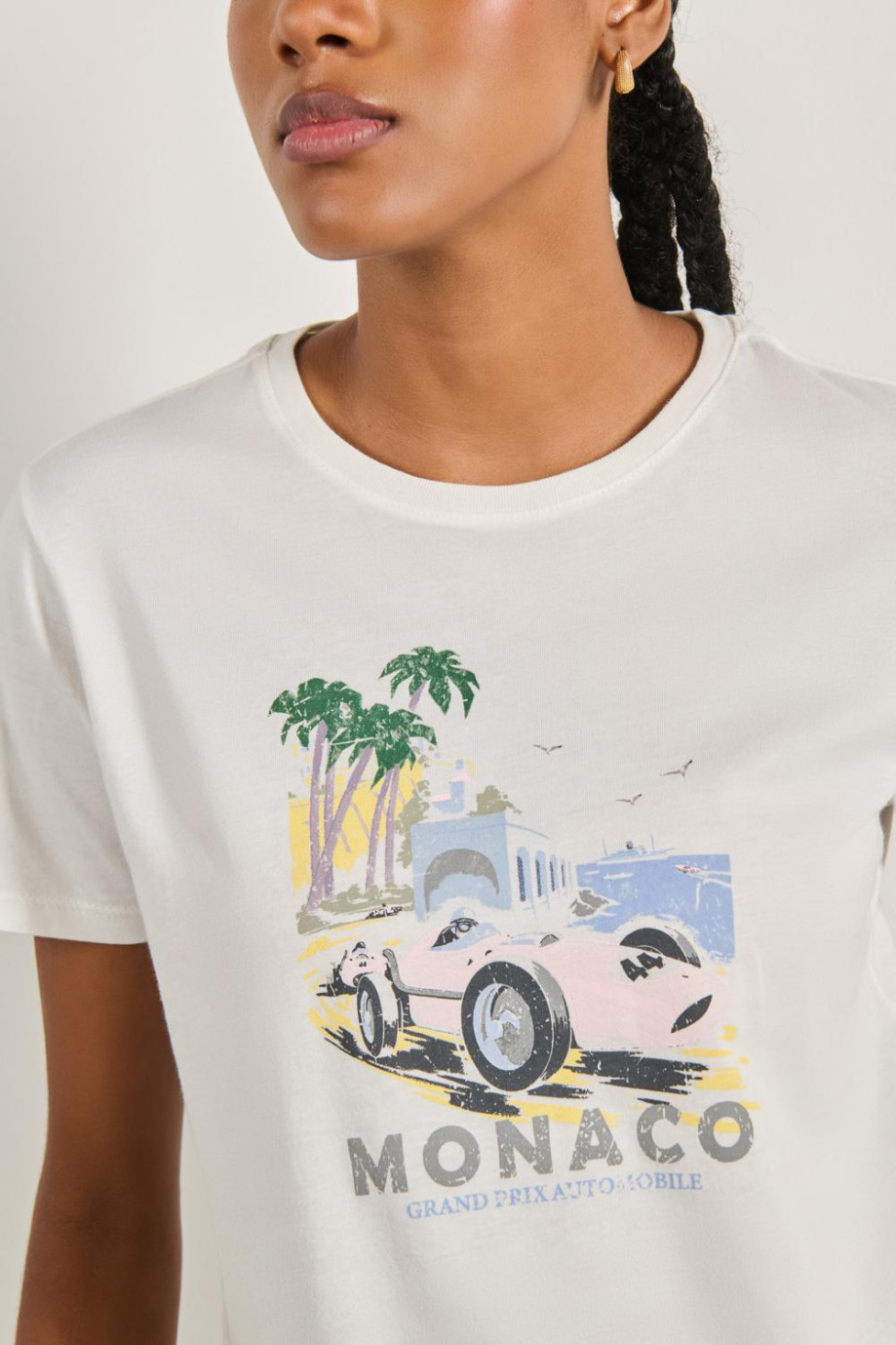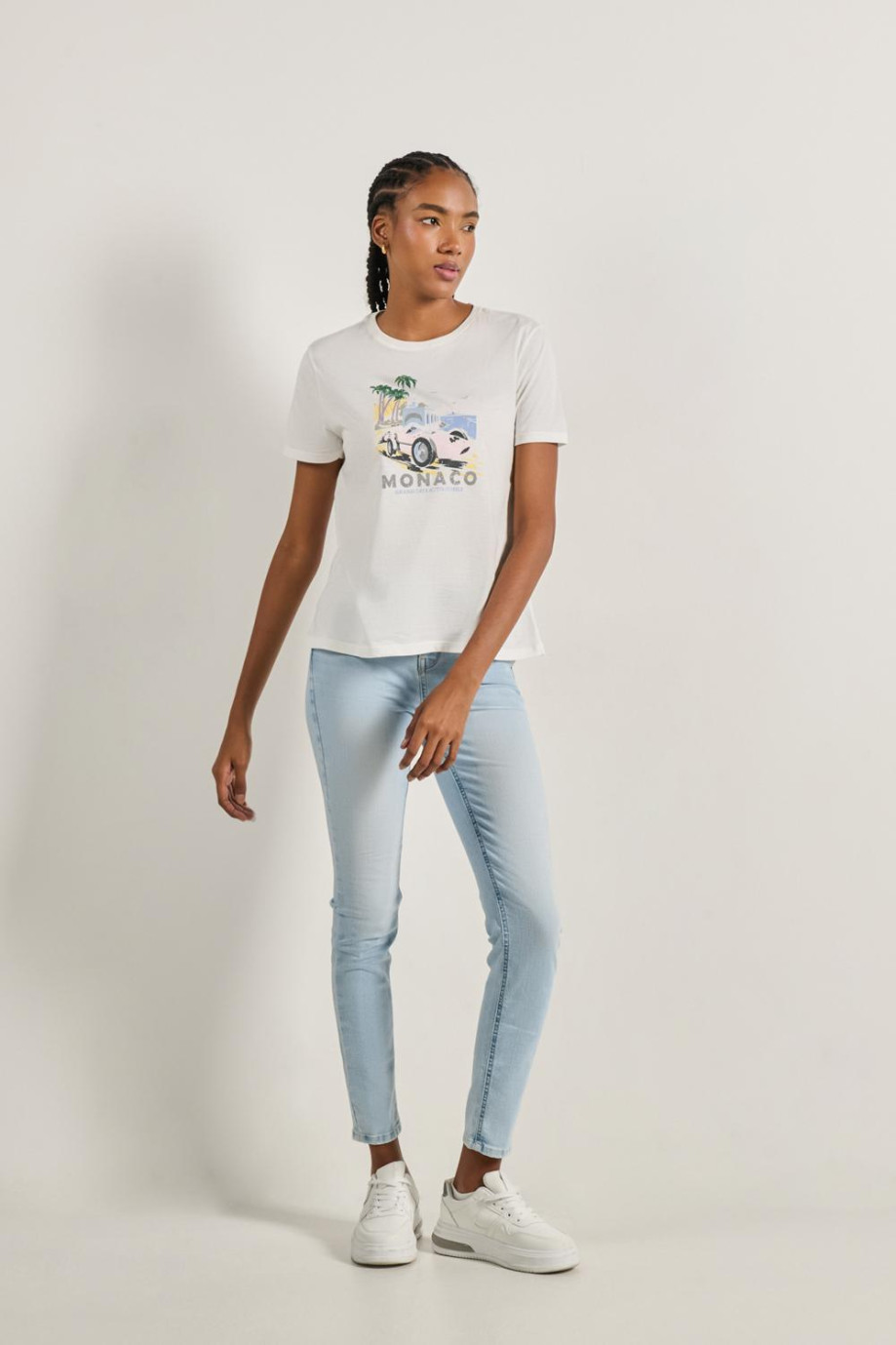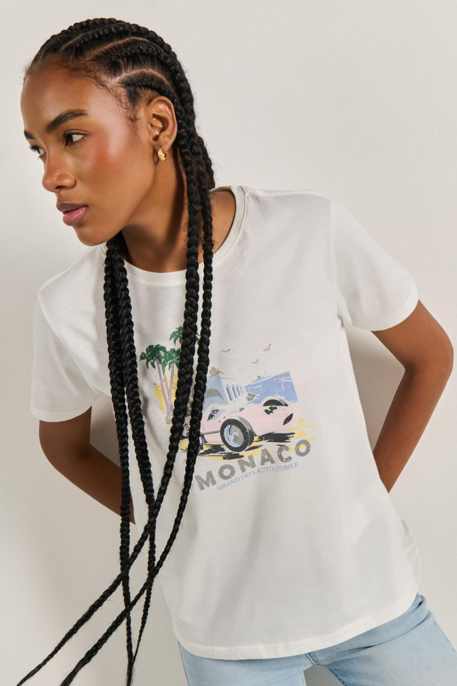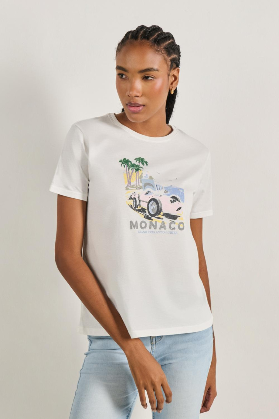 Camiseta cuello redondo para mujer en tono unicolor, elaborada en tela de algodón y con un fit ajustado, cuenta con diseño racer estampado en frente y manga corta. Enciende motores con tu total look combinando esta prenda con tus jeans o faldas favoritas, así lucirás moderna en todos tus planes.