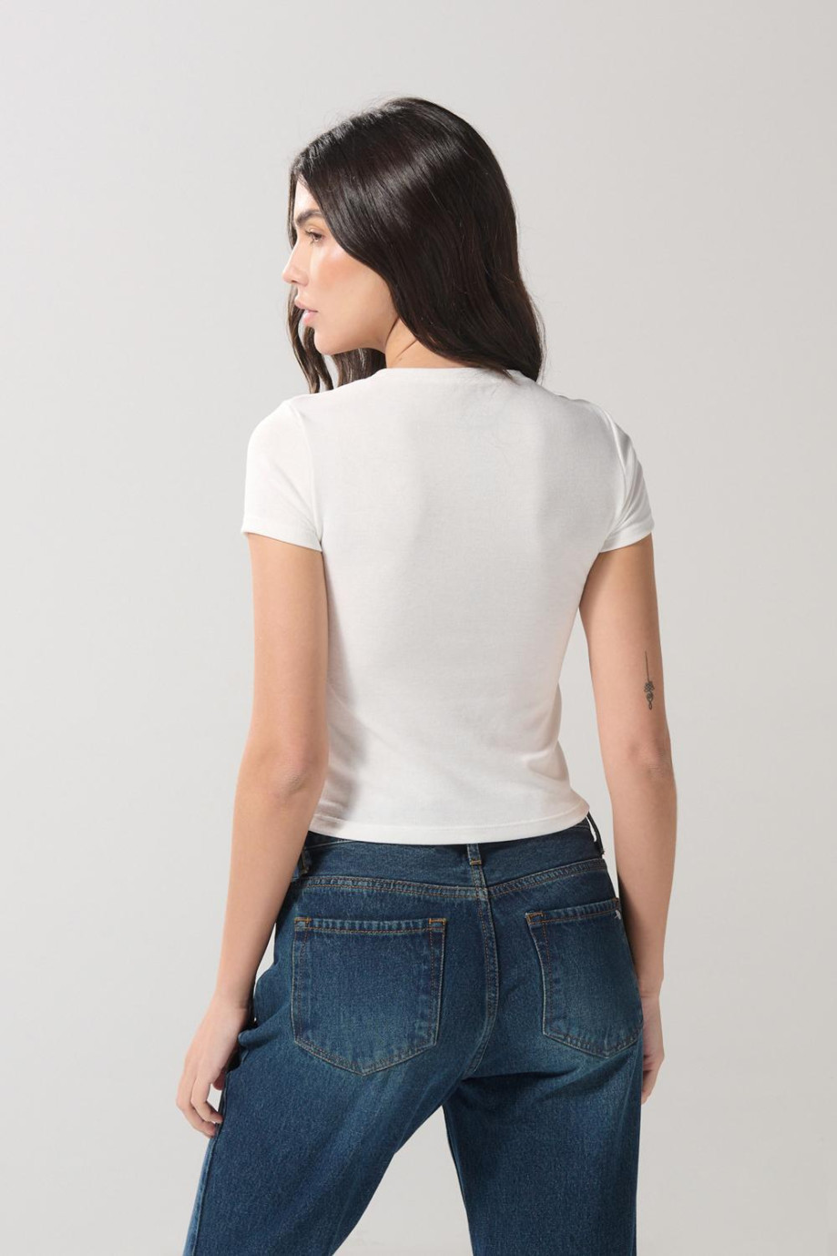 Camiseta para mujer en tono unicolor, confeccionada en tela de rib con texturas, cuenta con diseño de comida en frente, manga corta, cuello redondo y un ajuste ceñido al cuerpo. ¡Crea el outfit de tus sueños con esta prenda! Combínala con un jean jegging y luce única en todo momento y lugar.