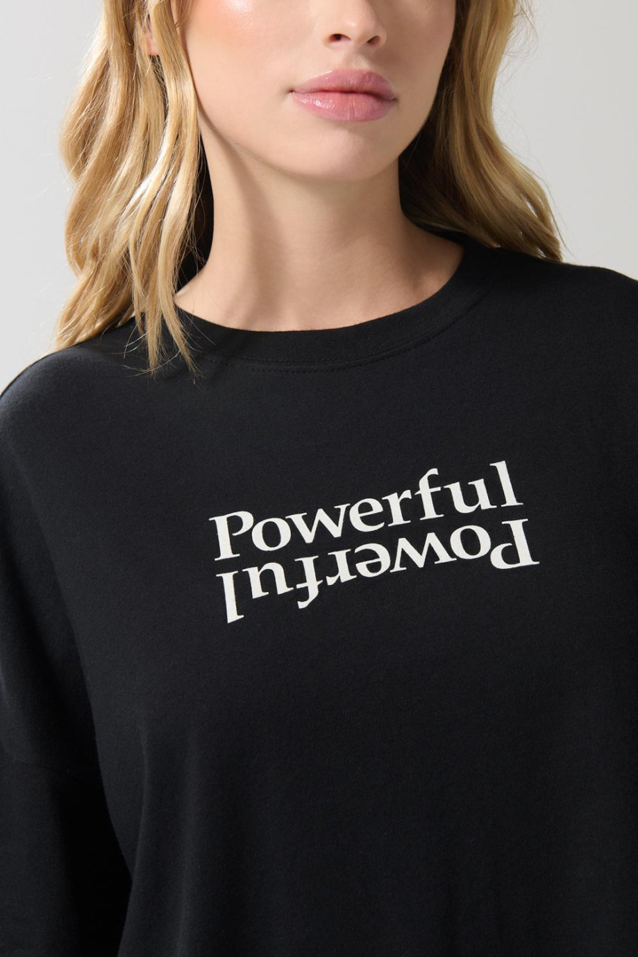 Camiseta crop top unicolor para mujer cuenta con manga corta, cuello redondo, frase estampada en frente, hombro caído y una silueta oversize en el cuerpo. Infaltable en tu outfit, podrás lucirla con tu jean KOAJ favorito y marcar la diferencia en tus planes diarios o con amigos.