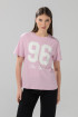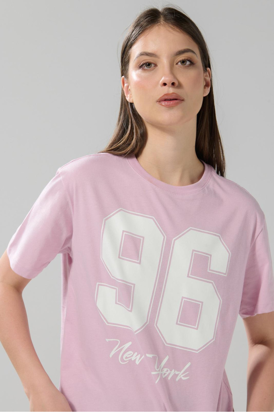 Camiseta para mujer manga corta, unicolor, en algodón, cuello redondo, hombro rodado, silueta holgada, con estampado en frente estilo college,