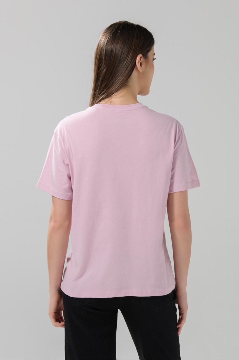 Camiseta para mujer manga corta, unicolor, hombro rodado, estampado en frente.