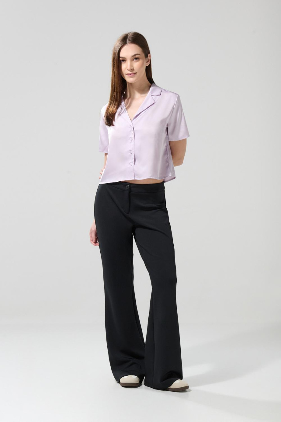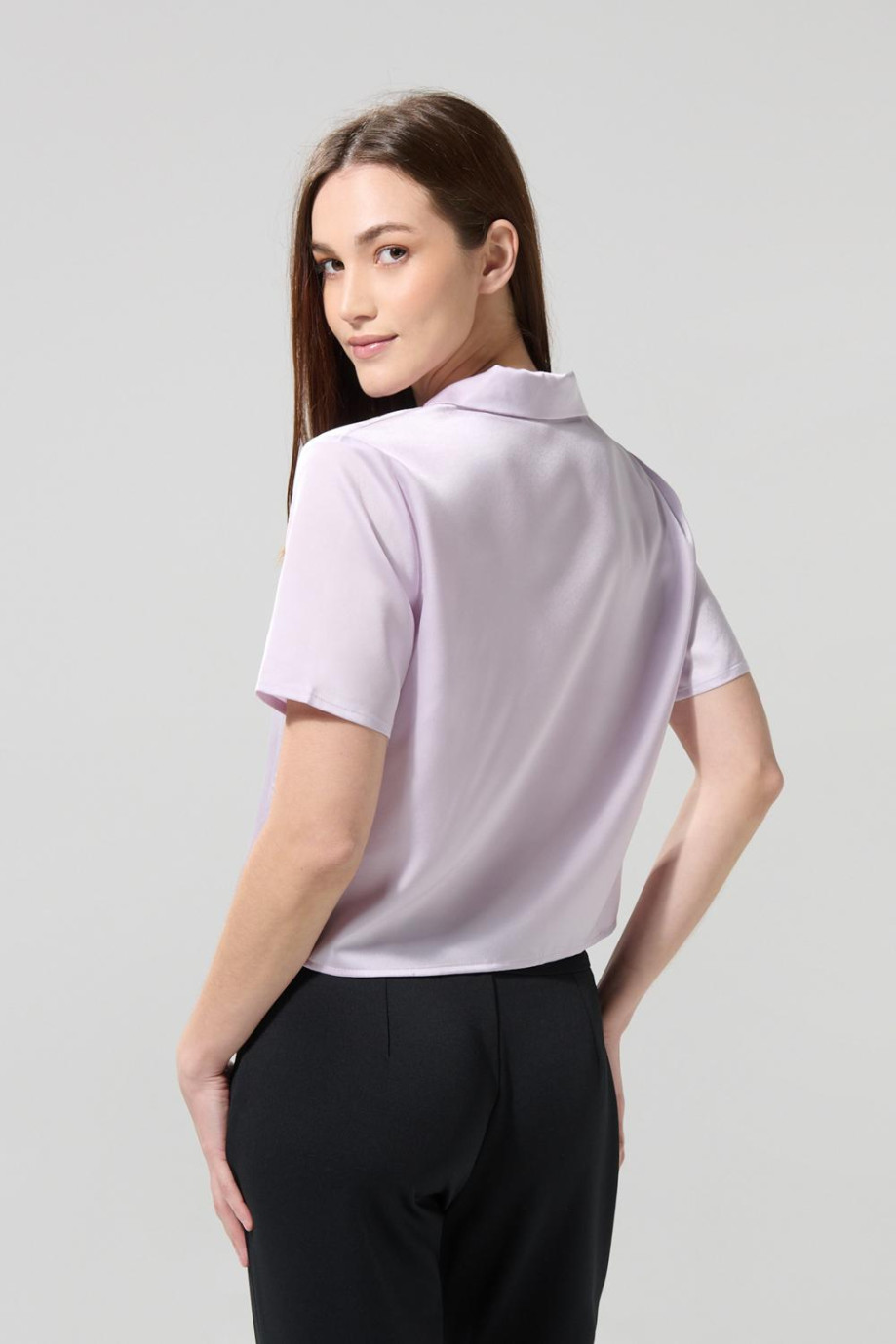 Blusa unicolor manga corta para mujer, confeccionada en tela suave de satín, cuenta con cuello resort, cierre delantero con botones y un fit que se ajustará al cuerpo en la medida precisa. Lleva un look estilizado combinando esta prenda con faldas o shorts. ¡Serás la inspiración de los demás!
