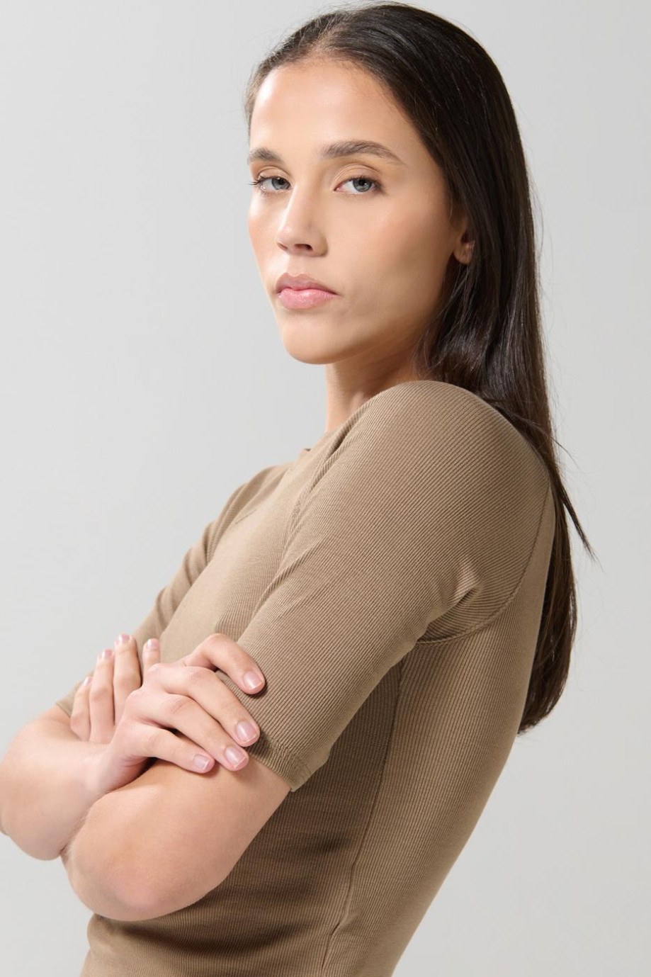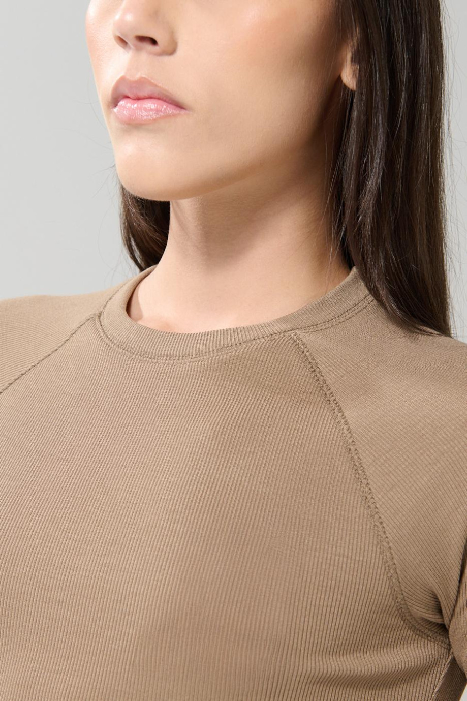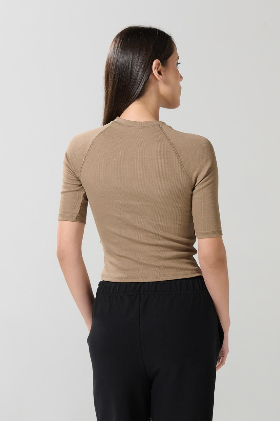 Camiseta manga ranglan corta unicolor con texturas de canal