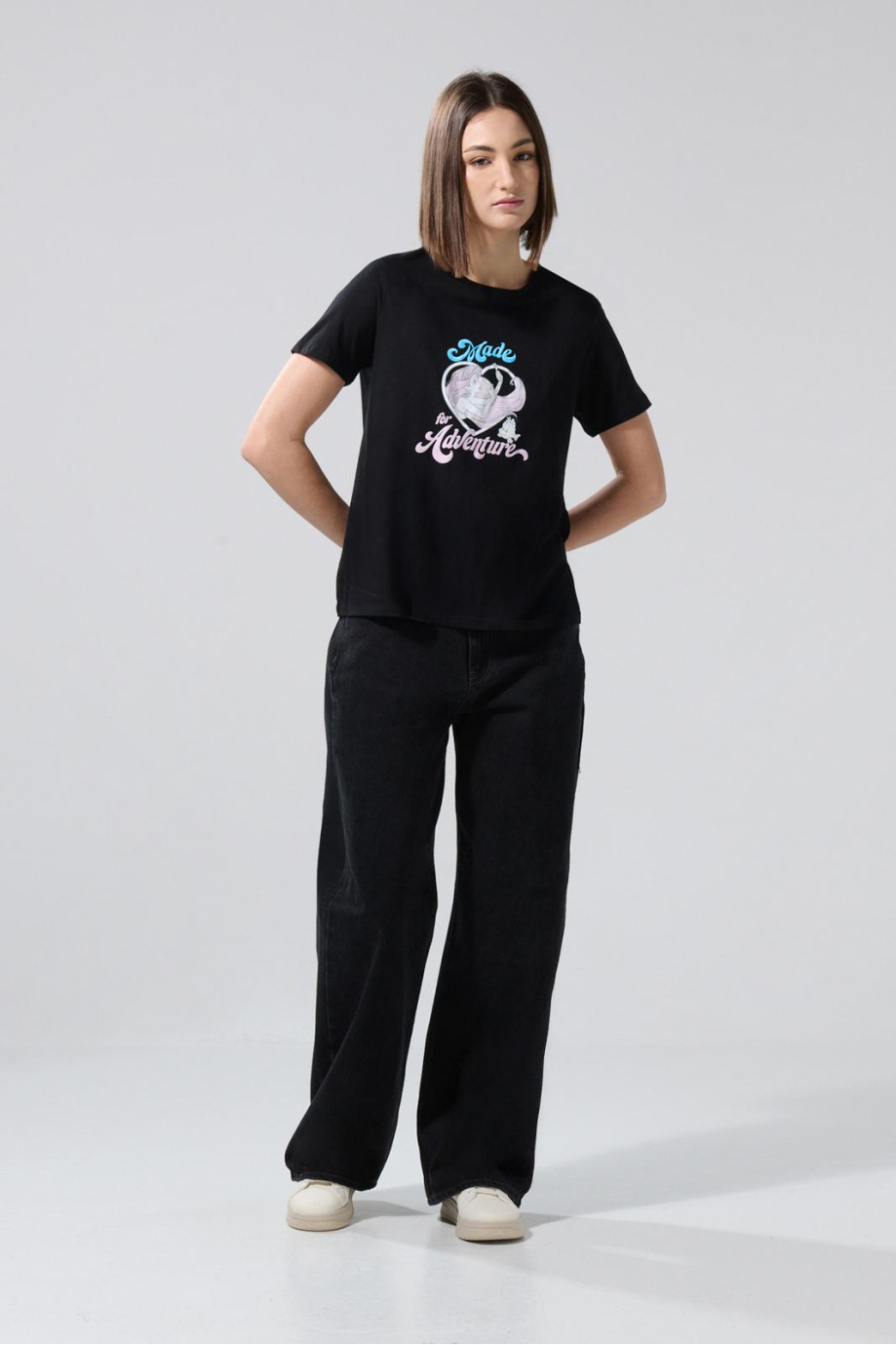 Camiseta cuello redondo negra para mujer, confeccionada en tela de algodón, cuenta con diseño de La Sirenita (Princesas, Disney) en frente, manga corta y un fit que se ajustará al cuerpo en la medida precisa. Resalta tu lado más auténtico con esta prenda, vístela con una falda de jean y serás el centro de todas las miradas.
