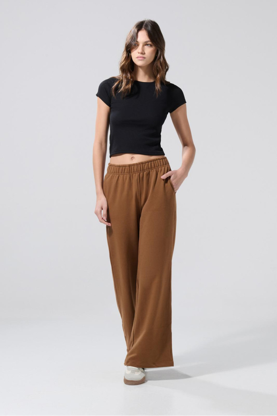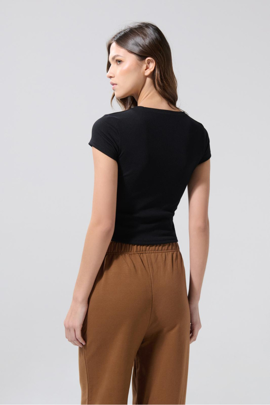 Camiseta en rib manga corta unicolor con ajuste ceñido