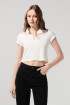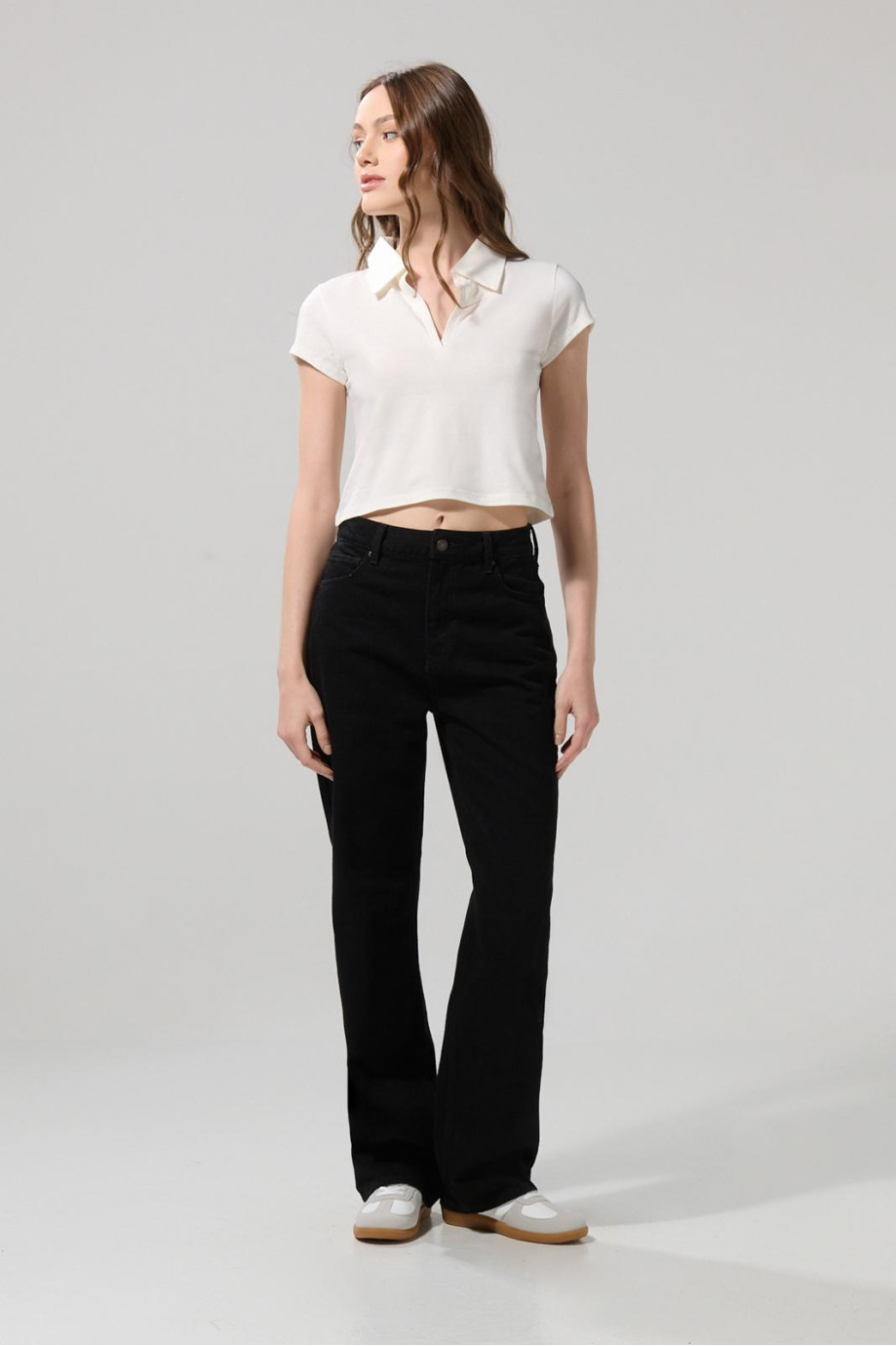 Camiseta unicolor crop top para mujer cuenta con manga corta, cuello tipo polo, escote en V y un fit que se ajustará al cuerpo en la medida precisa. ¡Esta prenda resaltará todo tu estilo moderno! Con un jean push up y un par de tenis altos crearás una combinación que amarás.