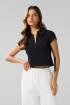 Camiseta crop top unicolor con cuello polo y manga corta