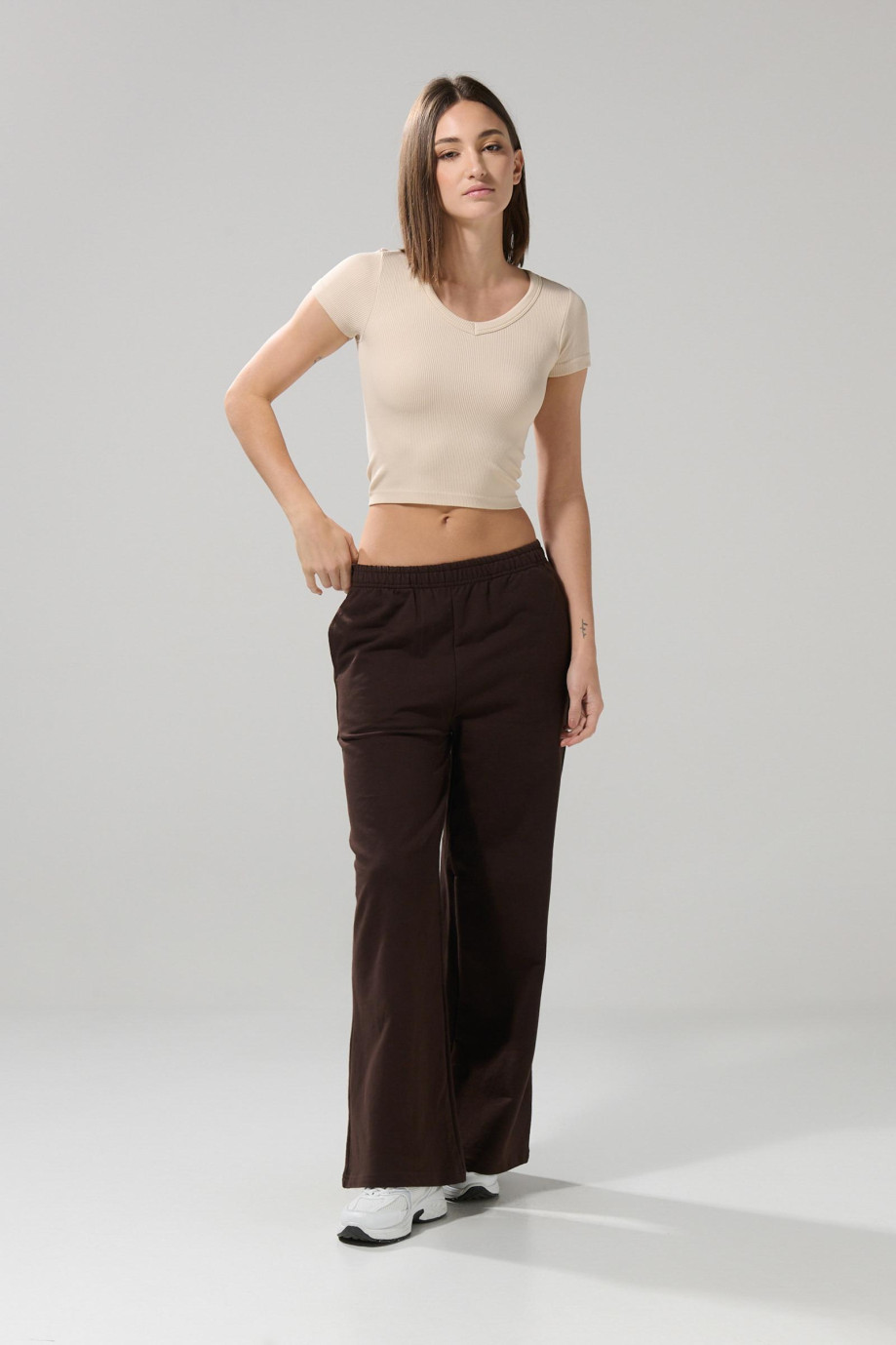 Camiseta crop top unicolor para mujer, confeccionada en tela acanalada, cuenta con manga corta, cuello V y una silueta ajustada al cuerpo. ¡Esta es una prenda juvenil y fácil de combinar que debes tener! Con un jean push up crearás un outfit con el que te identificarás.
