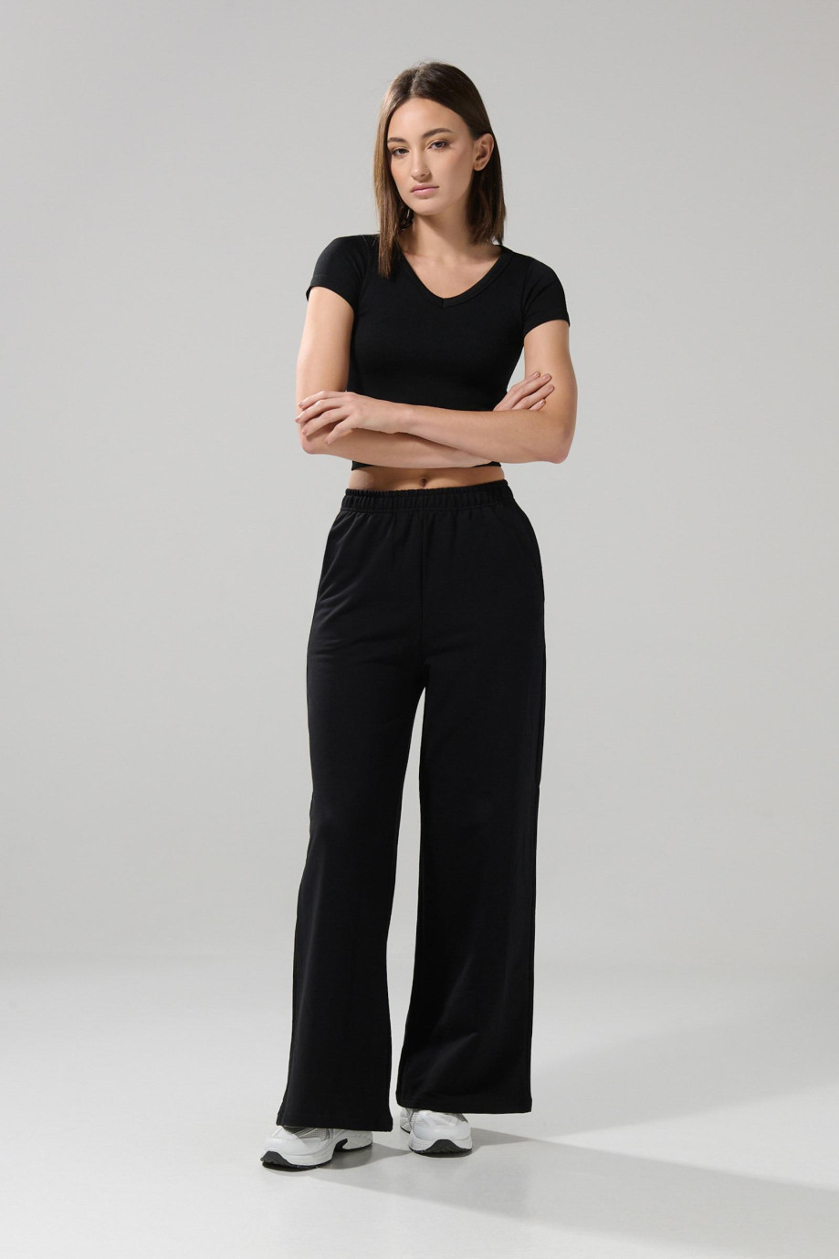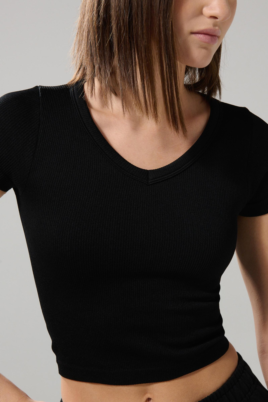 Camiseta crop top unicolor para mujer, confeccionada en tela acanalada, cuenta con manga corta, cuello V y una silueta ajustada al cuerpo. ¡Esta es una prenda juvenil y fácil de combinar que debes tener! Con un jean push up crearás un outfit con el que te identificarás.